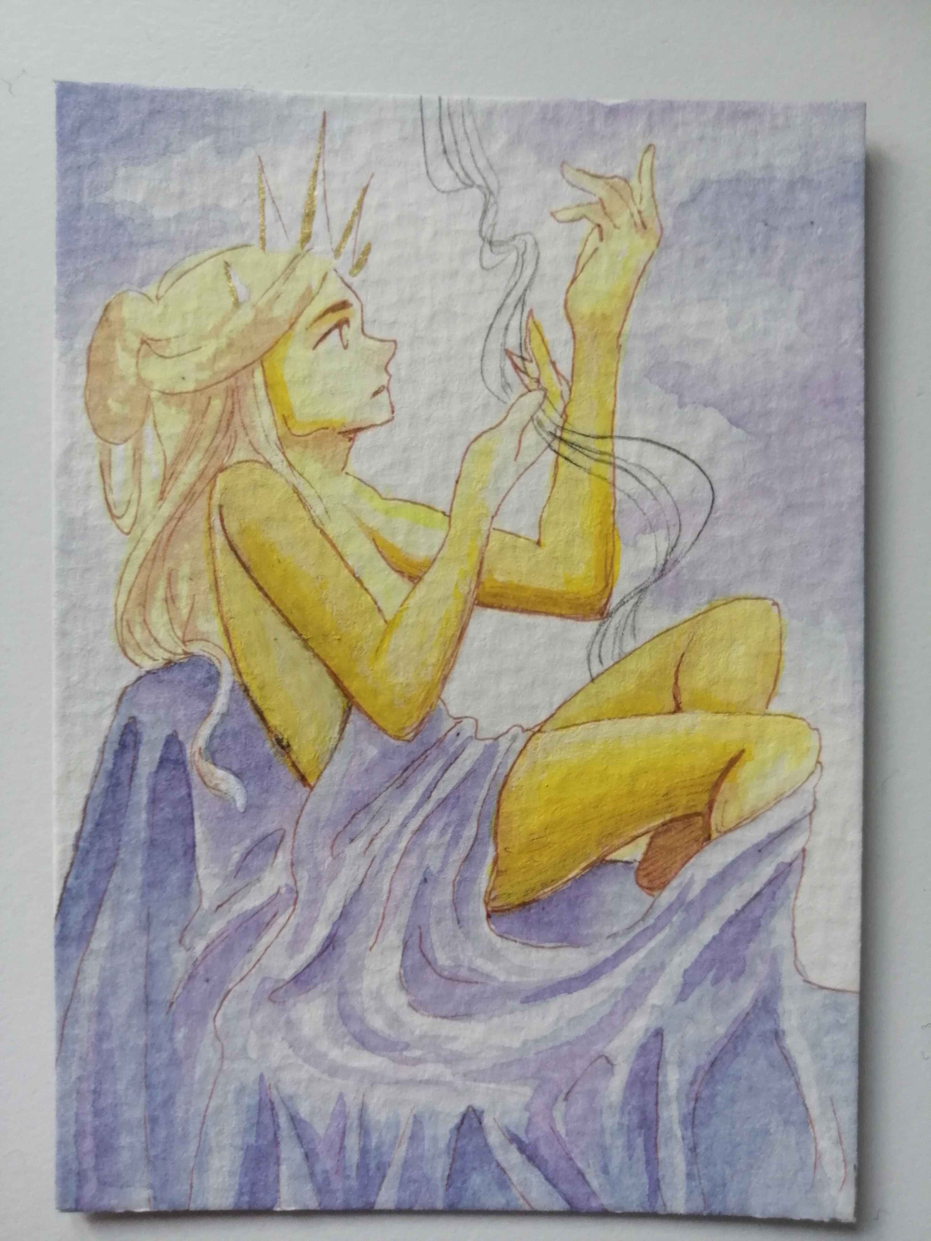 Ich wollte Heras Fähigkeit darstellen die ihr Einsicht in jemanden gewährt. Zusätzlich wollte ich sie etwas jünger zeigen um ihre sanfte und verletzliche Seite mehr zu zeigen. So sieht man sie ja in den Flashbacks ab und an ja.