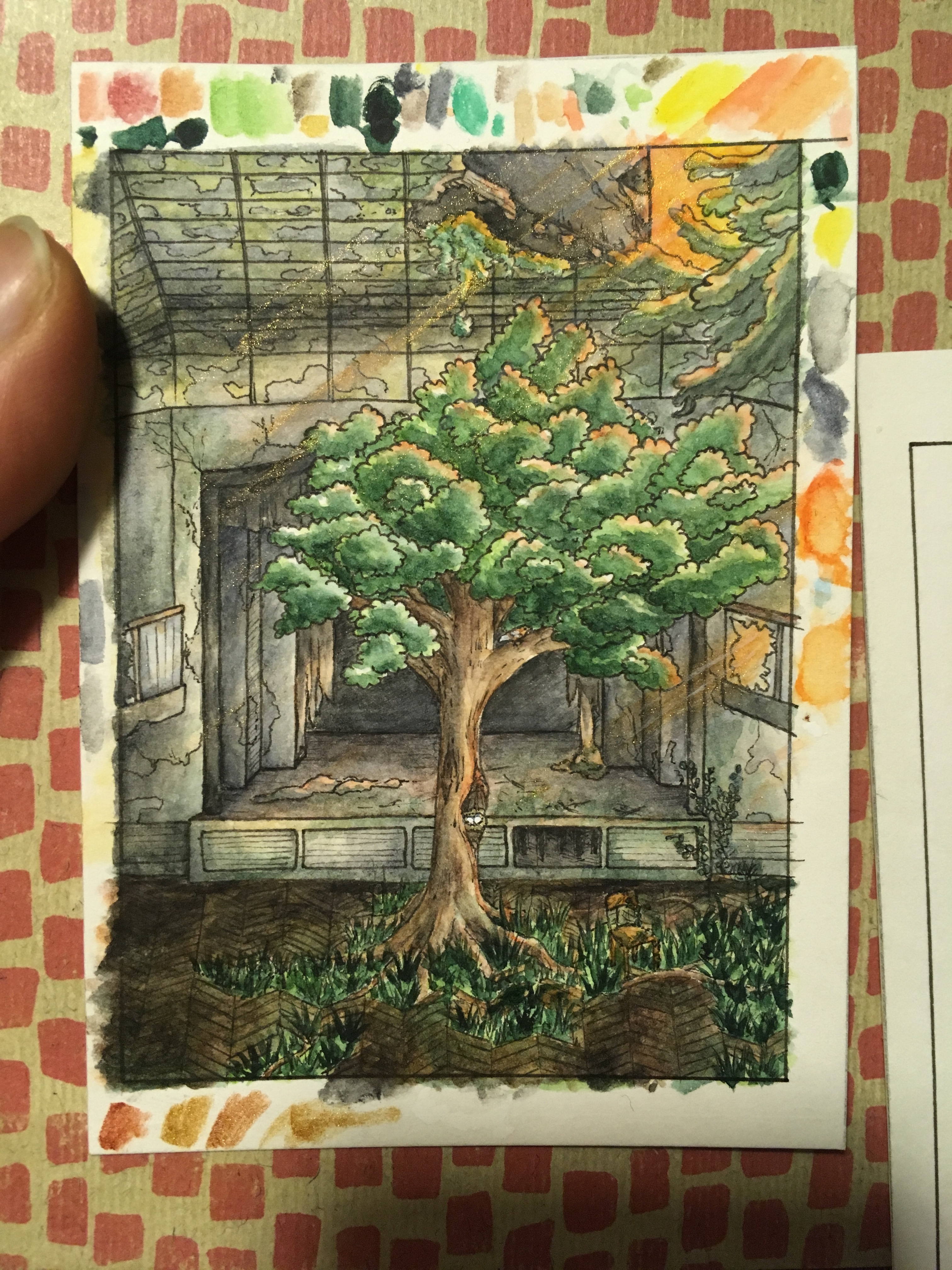 Ich habe gestern noch eine kleine Veränderungen wie einen hellen Schimmer um die Pilze und eine minimale Kante am Wasser und in dem Gang vorgenommen. Da das Foto an Unschärfe leidet, habe ich die Karte nochmal eingescannt. Dabei sind dann die Farben verloren gegangen