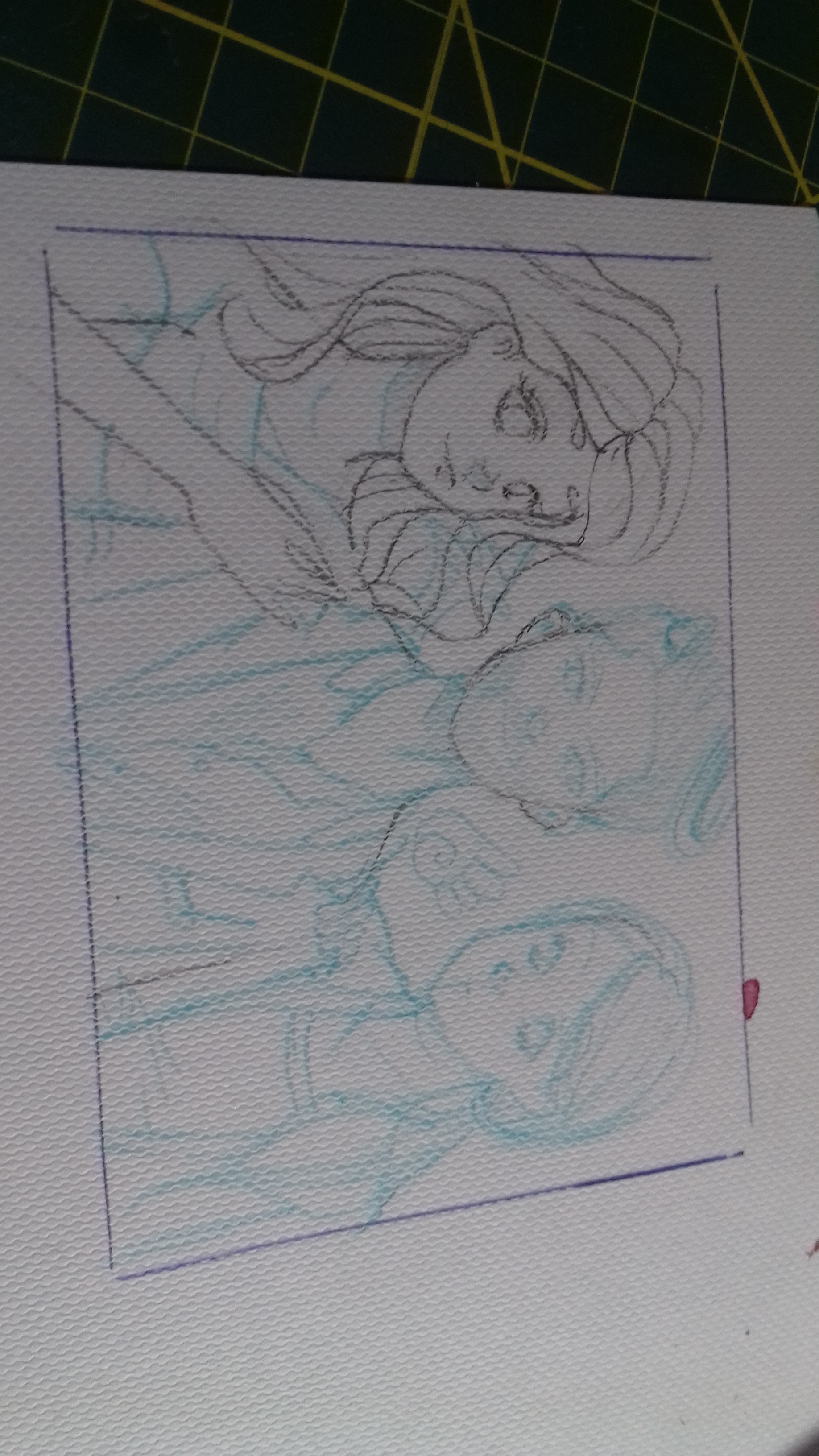 Hier ist meine noch etwas grobe erste Skizze, Ideen für Karte 2 und 3 hab ich auch schon hingekritzelt, da ist aber nicht wirklich was zu erkennen ^^