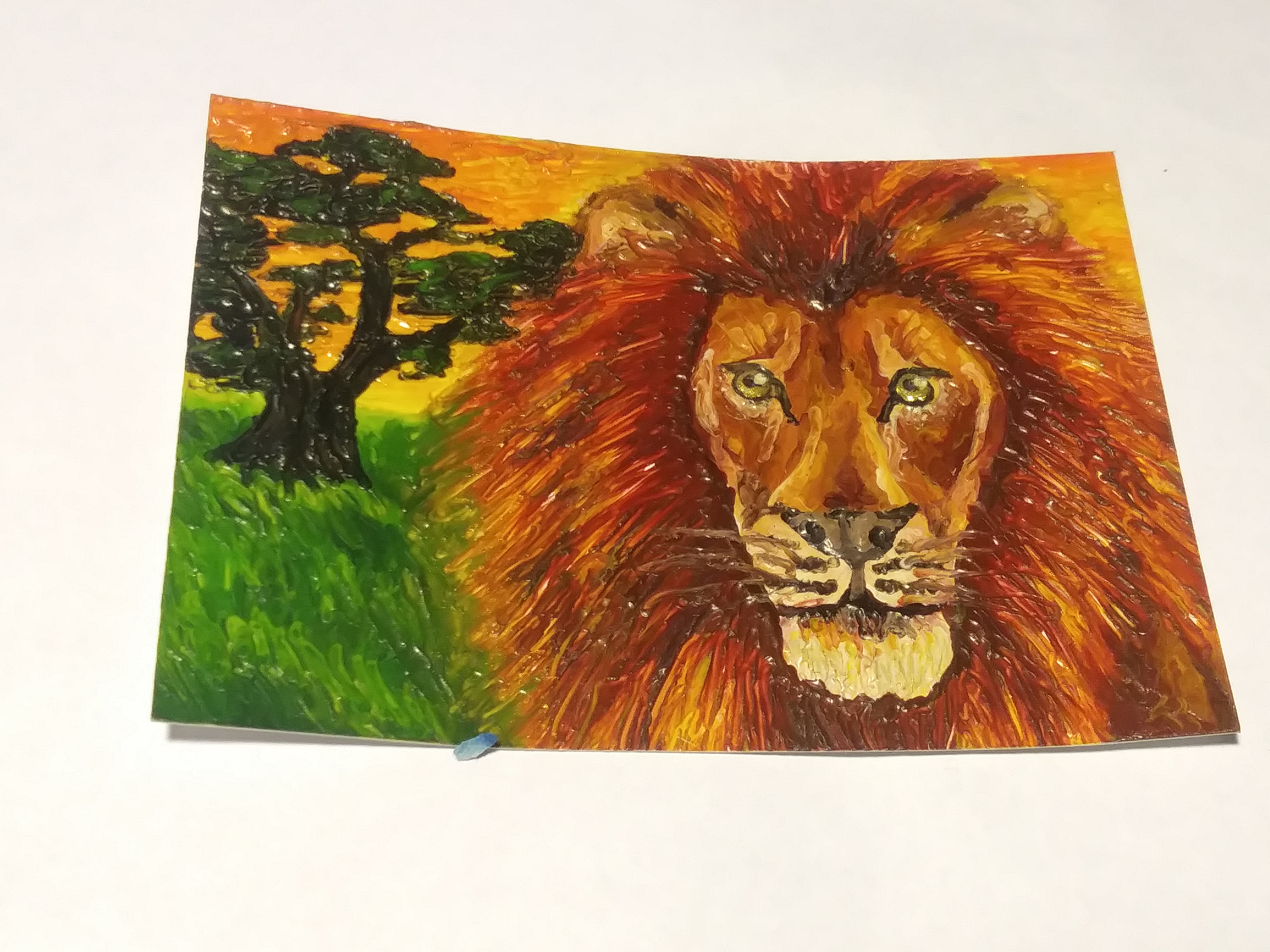 Auch diese Karte gefällt mir gut ,ein stattlicher Löwe ,den Du hier gestaltet hast . Hast Du diesen wieder nur mit dem Encaustic Pen gezeichnet ?