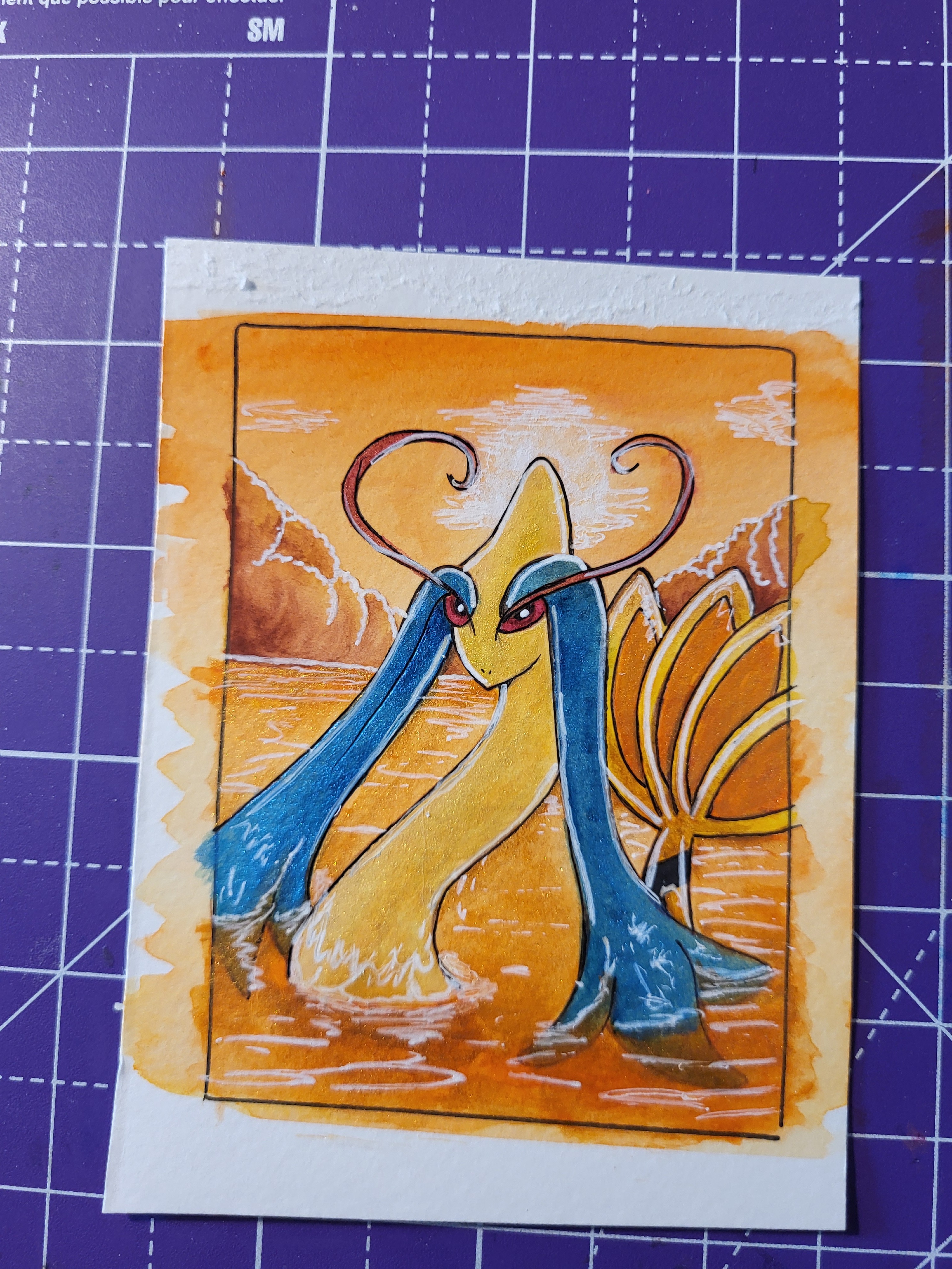Somit ist meine zweite Karte fertig mit ein wunderschönes Shiny Milotic mit Sonnenuntergang und Shiny’s