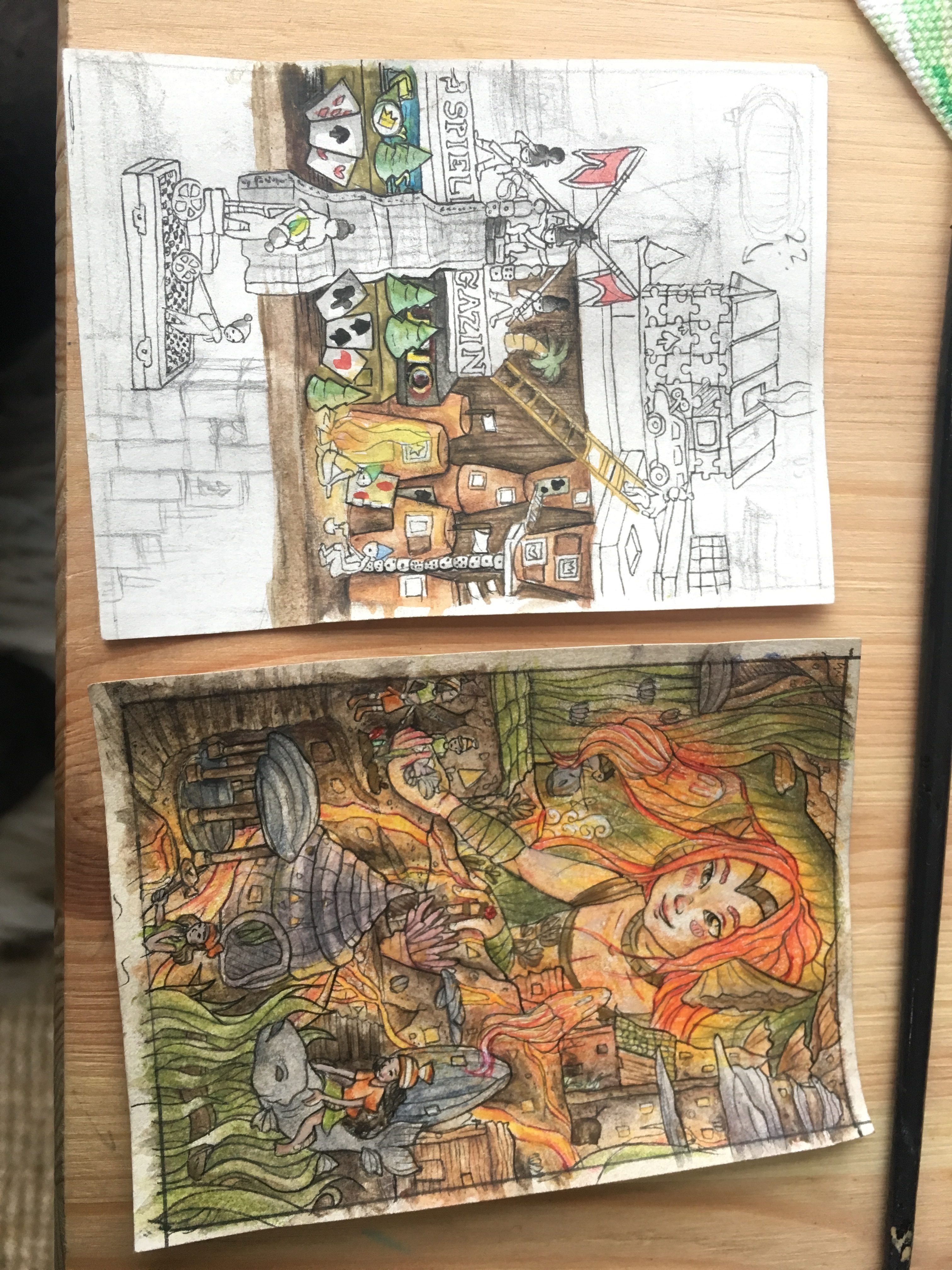 Ich sitze jetzt an Karte drei und Karte zwei ist gerade fertig geworden. Habe mich für die lavaflüsse entschieden :)