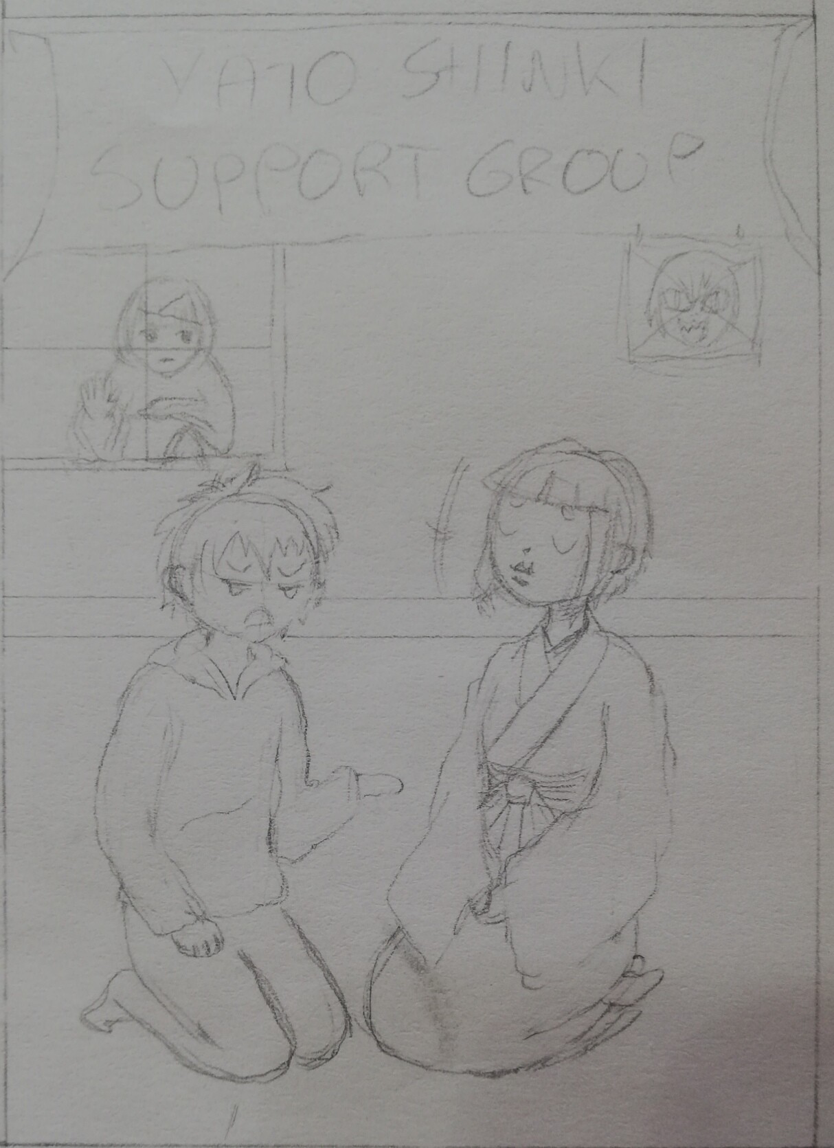 safe space:sparkles: wo sie sich über Yato auslassen können. Habt ihr noch Ideen für den Hintergrund? Da das hier keine Bastelkarte wird wollte ich ihn schon etwas detaillierter machen. Bzw wenn das so reicht, auch gut, ich kann sowas immer nicht so gut einschätzen weil ich selten gezeichnete Hintergründe mache :D