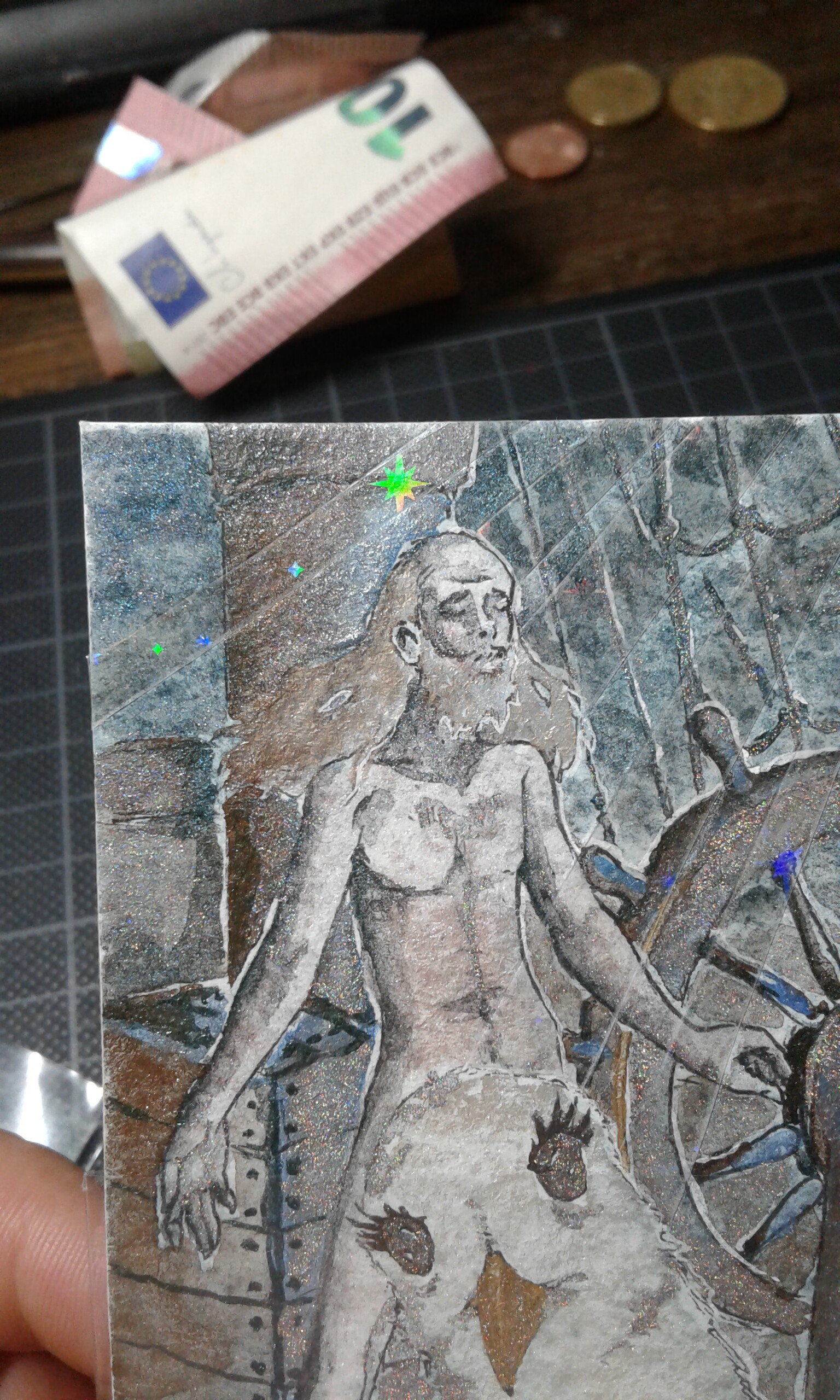 Ne, ich habe die Karten extra mit Skalpell geschnitten, weil ich bemerkt habe, dass meine Schneidemaschine für Aquarellpapier zu stumpf geworden ist. Also da ist nichts unabsichtlich abgerieben oder so. Also… denke ich. <.< Wenn sie aussehen wie auf dem Bild oben, dann sind sie so richtig.