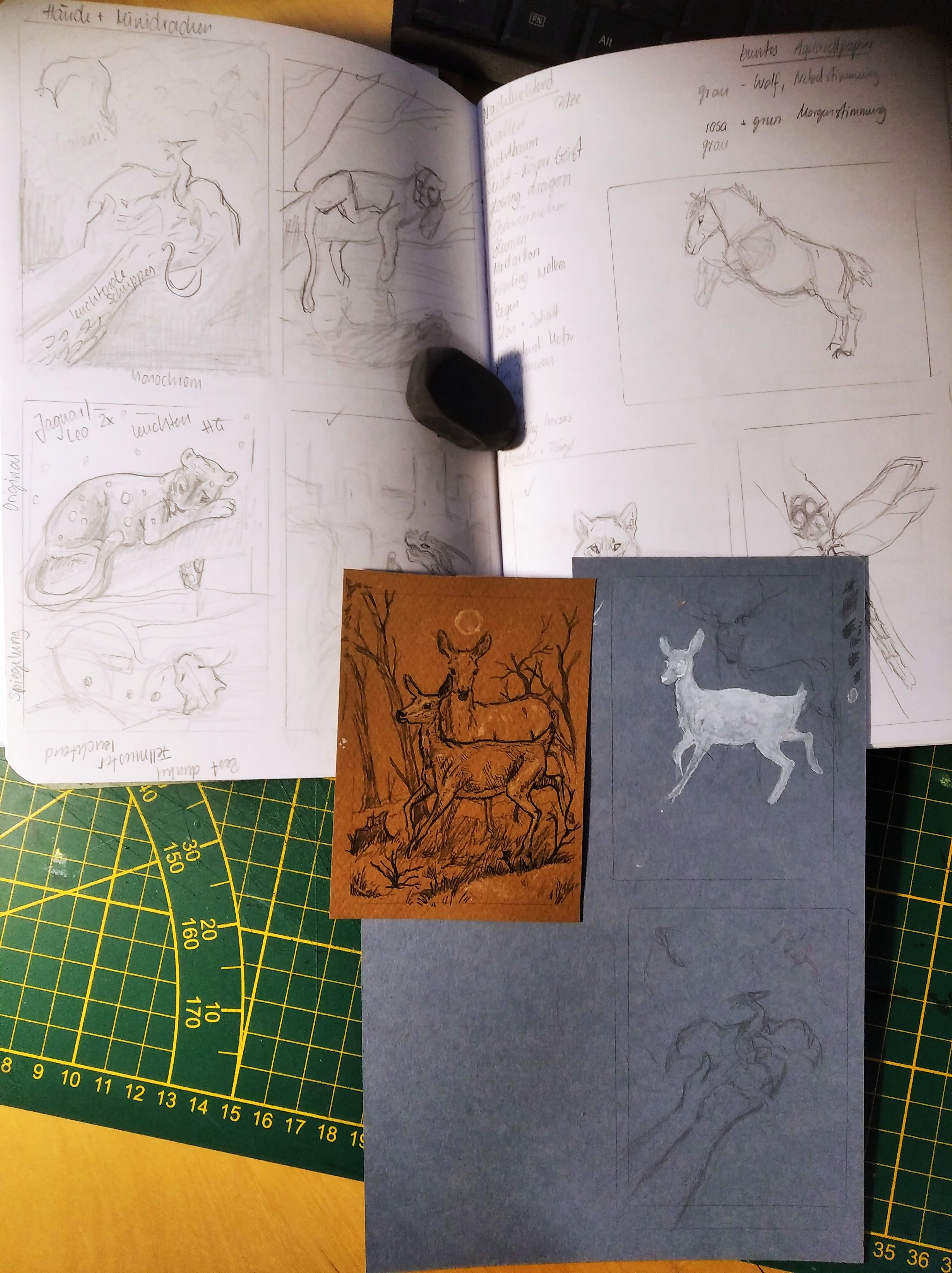Nummer 3 ist noch in Planung. Hatte mit Hirschen was probiert und durfte dafuer Sams tolle Tusche nutzen. Leider funktionierte nicht, was ich erzielen wollte, aber mal sehen, wie es weiter geht.