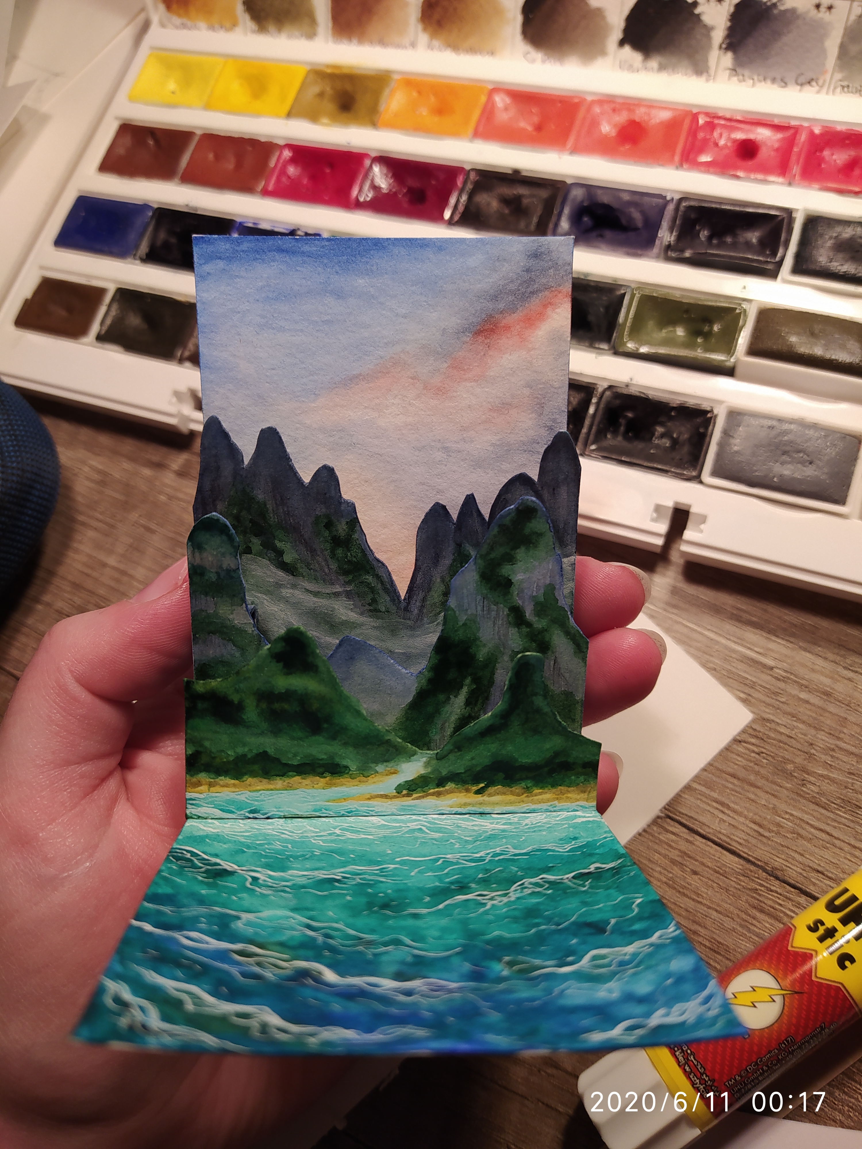 Die Vorderseite finde ich hübsch und passend gestaltet im Innenteil würde ich überlegen vorne ins Wasser vll noch einen kleinen Fisch zu setzen o.a. da wirkt es etwas leer :) aber insgesamt ebenfalls ein sehr schöner Beitrag, ich sehe schon, Spiralen sind in xD