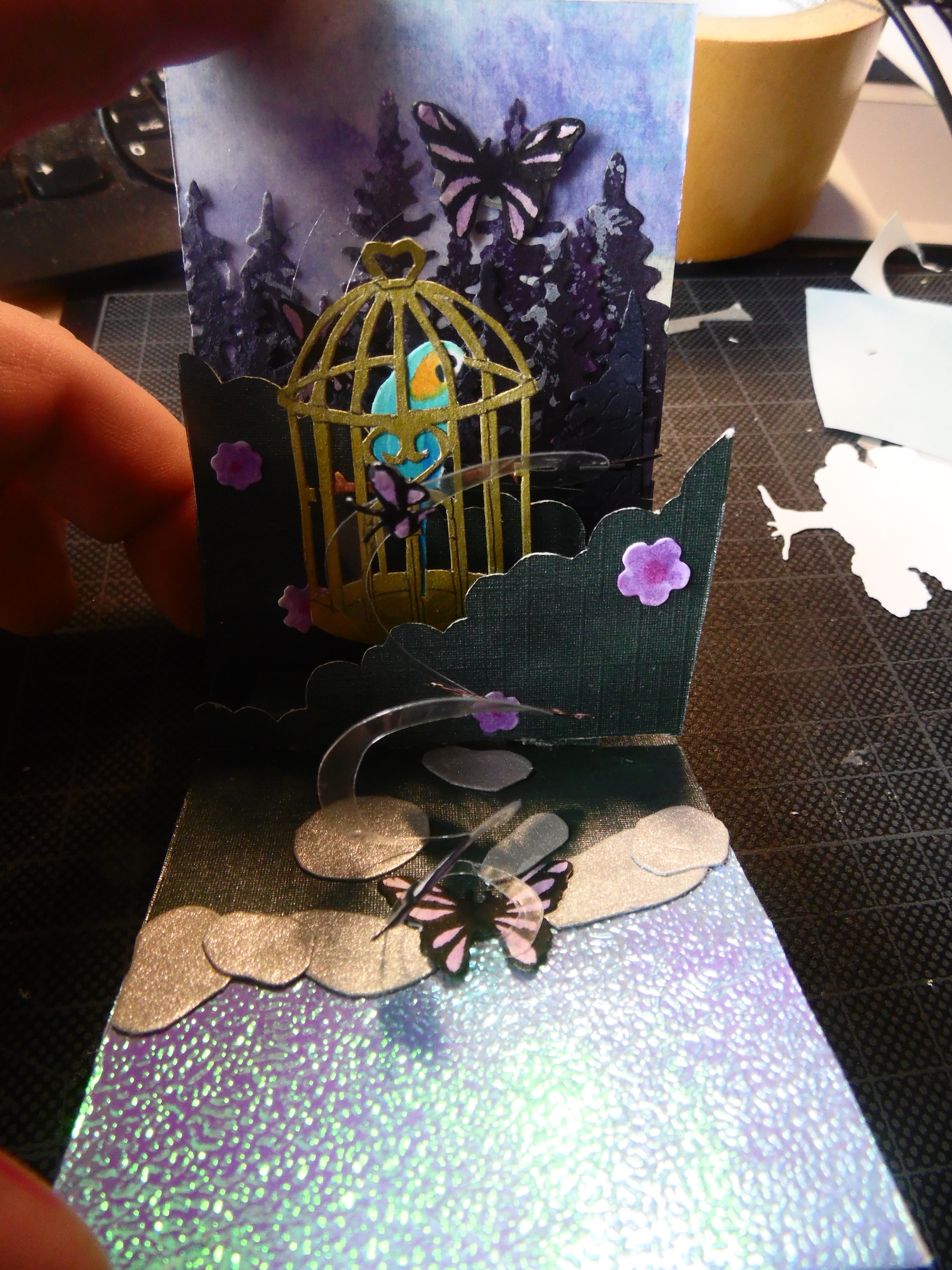 wenn ich das richtig sehe haben wir Dreidimensional die Spirale mit den Schmetterlingen, die Büsche und den Käfig, richtig? Da wäre evtl noch ein Bild in einem etwas schrägeren Winkel gut, um mehr zu sehen.