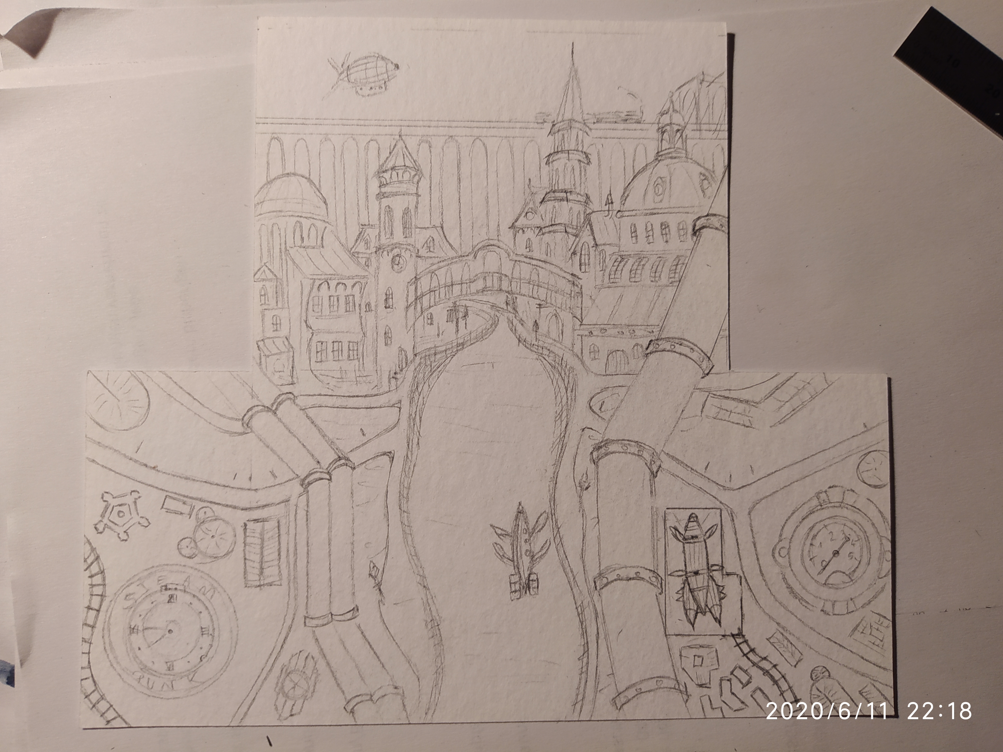Ich werde nicht alle ursprünglich geplanten Klappelemete einbringen können, aber es werden auf jeden Fall die zwei großen Gebäude und die Luftschiffe.