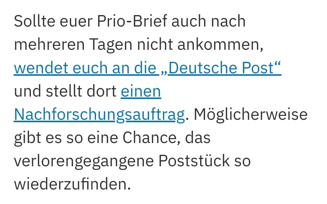 Ich werde schauen, ob ich mich irgendwie über das Briefzentrum beschweren kann, weil laut dem Artikel die Briefe ja bis nach Hamburg gekommen waren 🥲
