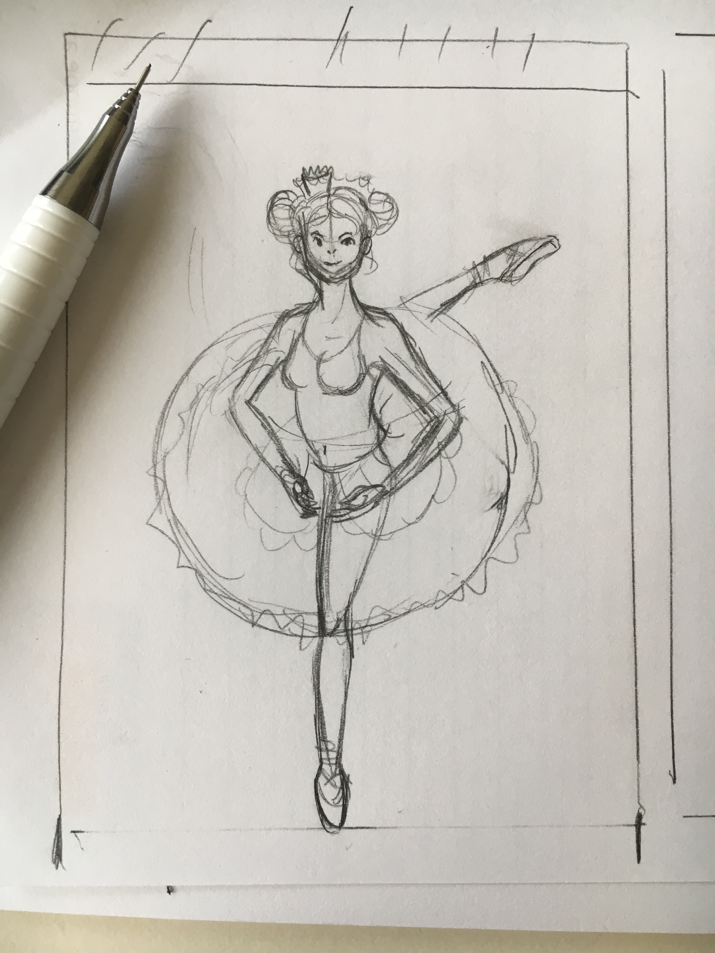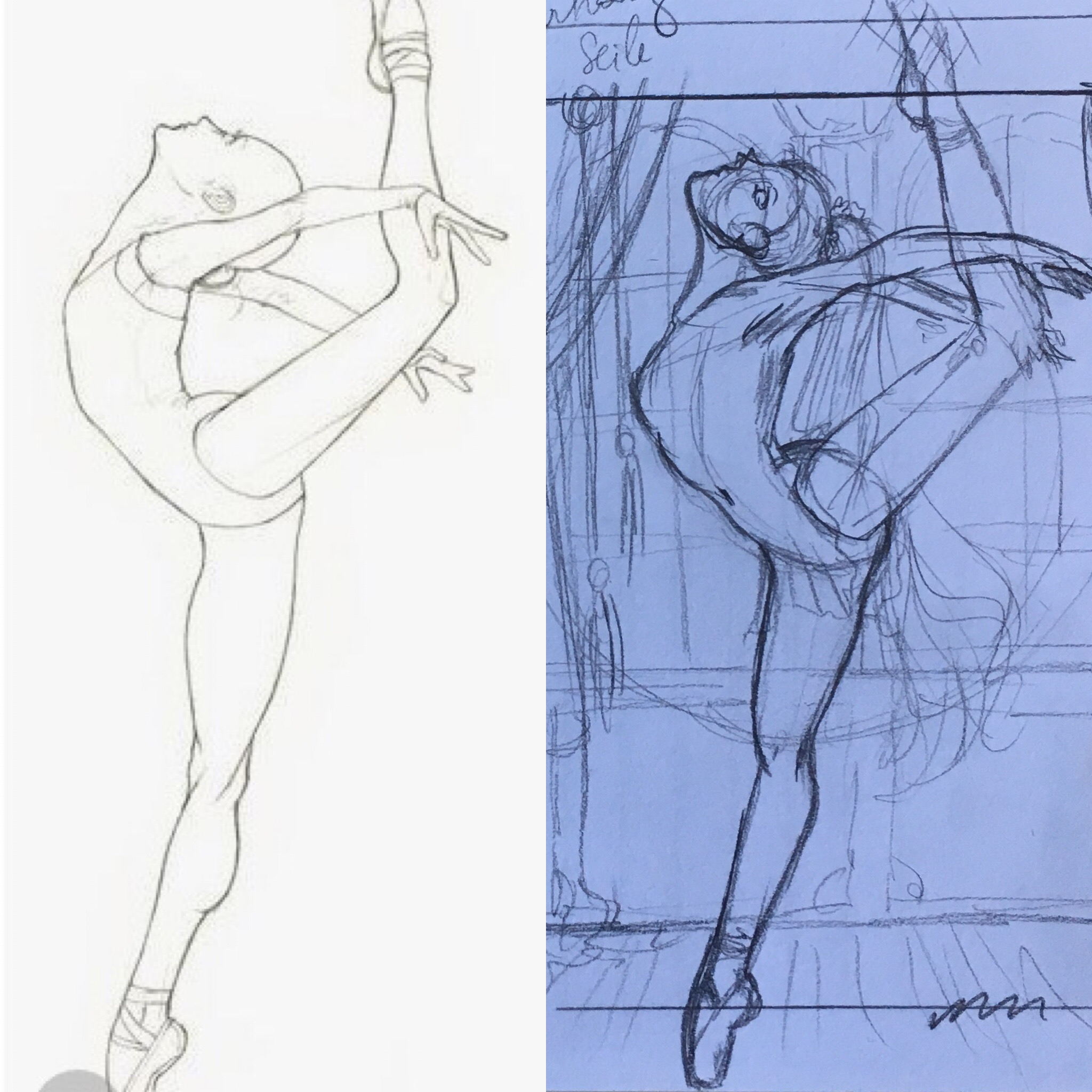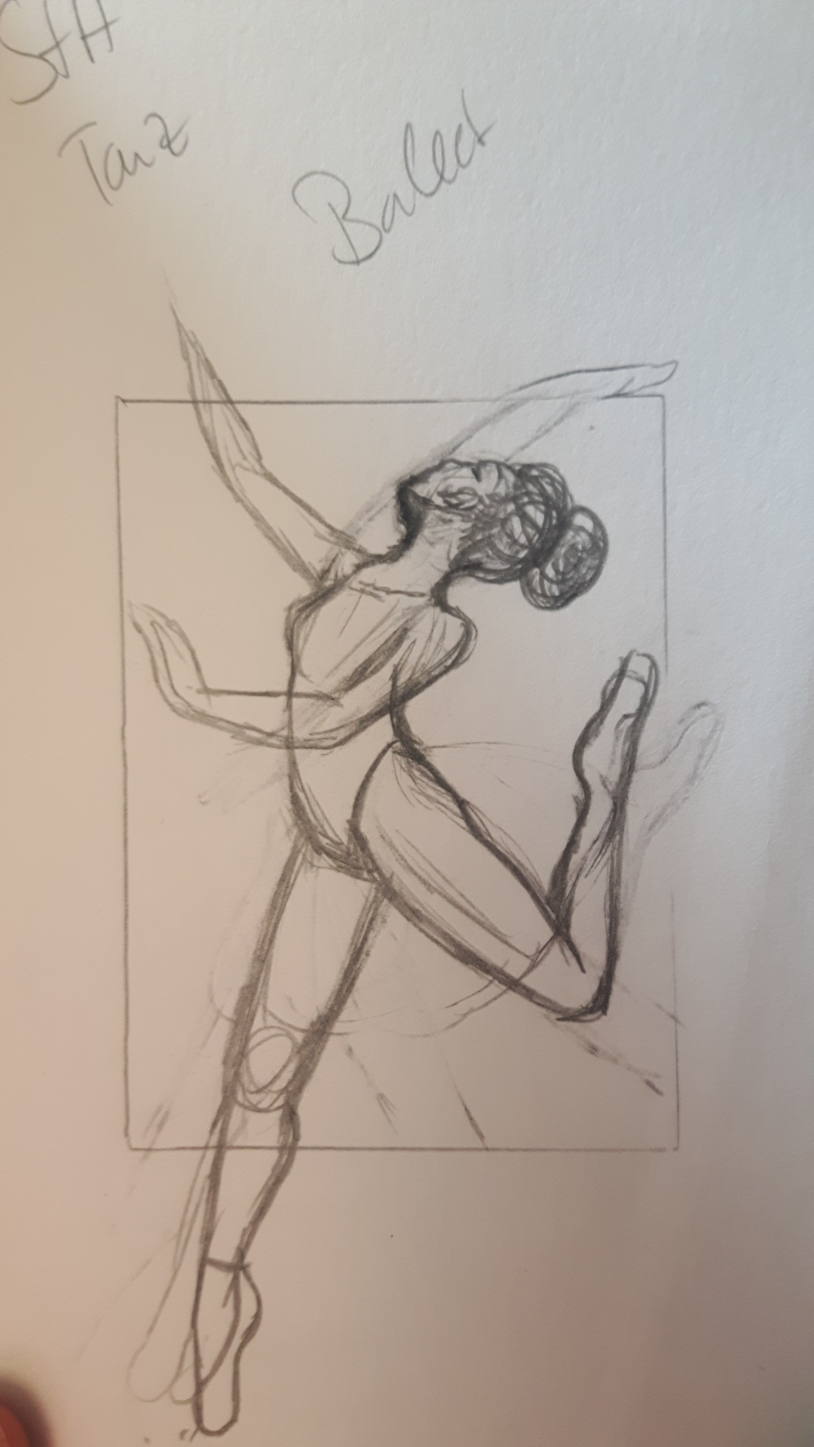 Skizze bei Gelegenheit (weil ich so “naja” … es happert hin und wieder mit den Proportionen bei mir) und wenn ich jetzt schon Ballett habe, würde ich eh keine andere mehr zeichnen können (Aufwärmen oder an Stange :( )