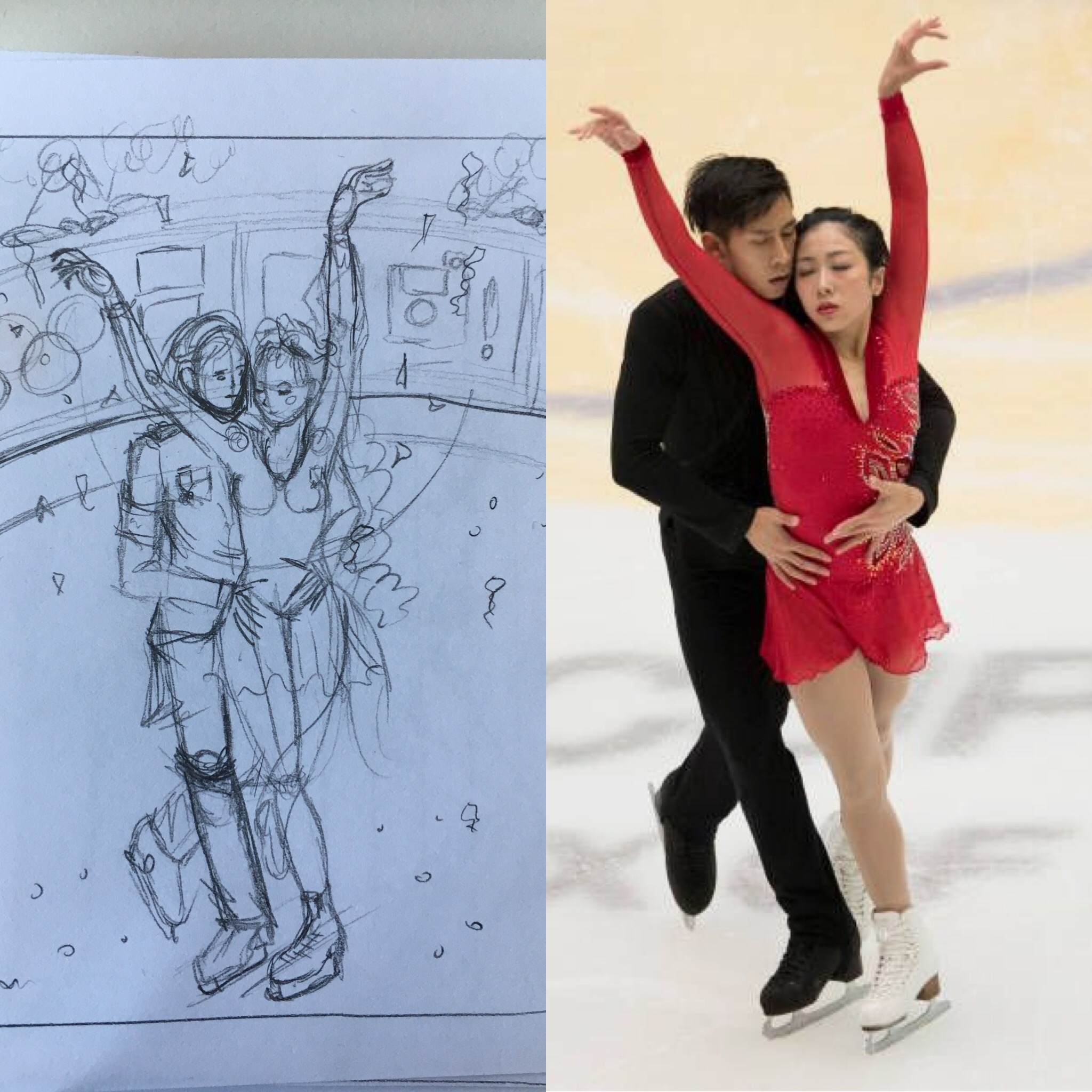 Die Eistanz Skizze ist auch sehr schön, besonders die Beinhaltung mag ich, da erkennt man die Bewegung sehr schön. Du hast es glaub ich eh angedeutet, aber ich glaub mit einem Outfit mit viel fließendem Stoff kannst du bei der Dame noch einiges an Bewegungsgefühl rausholen. :)