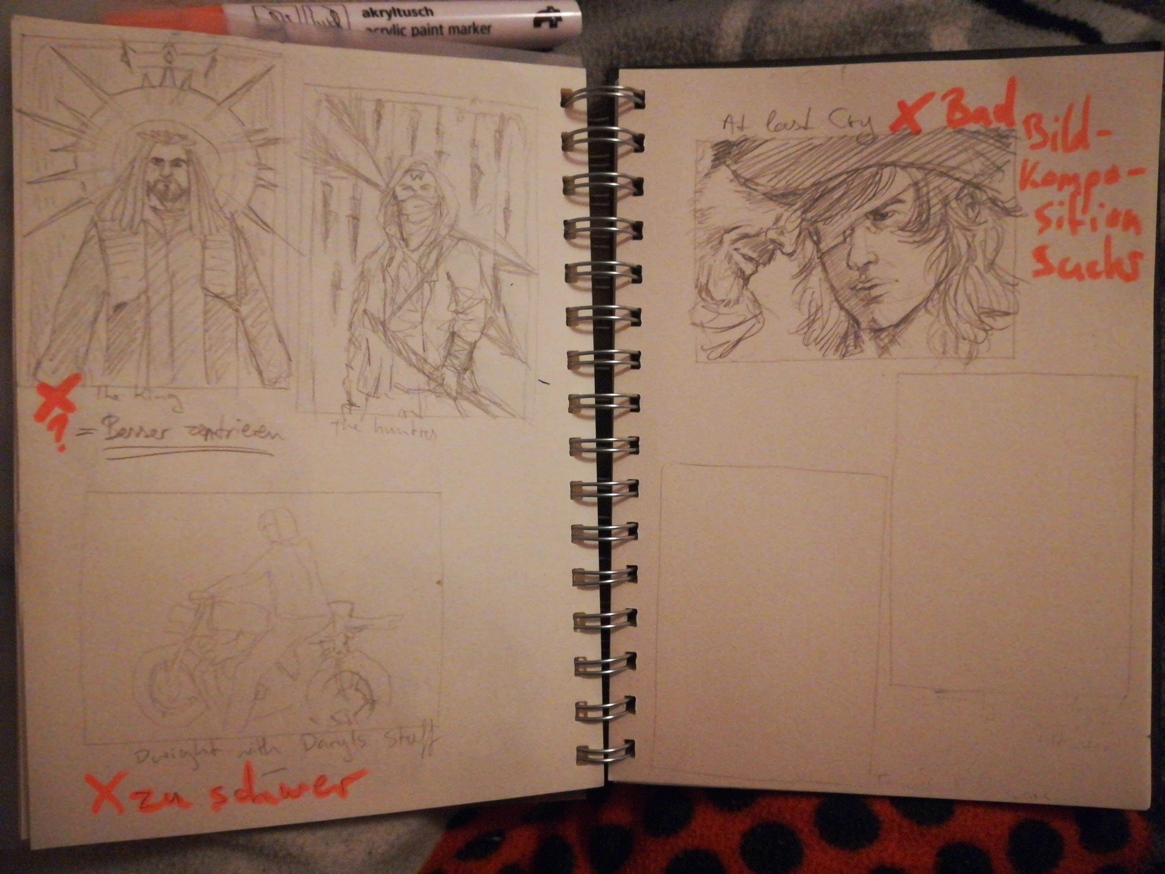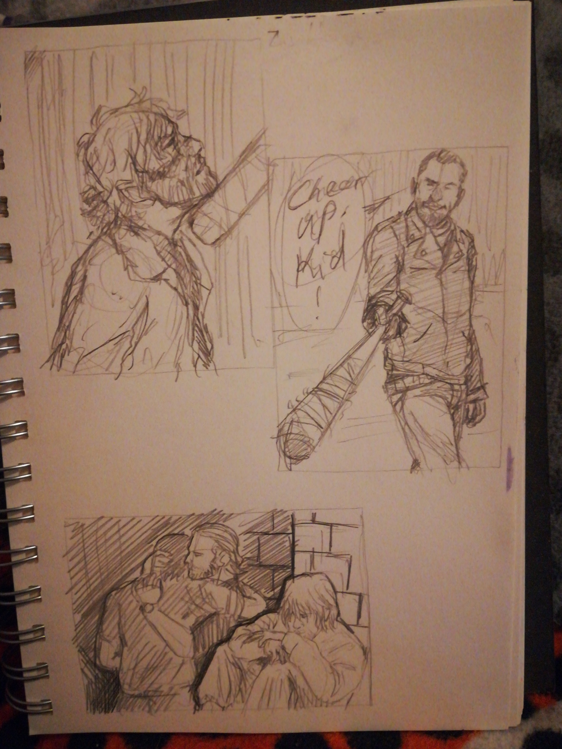 Mein Gott, diese drei Skizzen sind schon wahnsinnig gut! Ganz persönlich mag ich Rick mit Lucille unter dem Kinn am aller-, allermeisten. Ich werde dich aber natürlich nicht vom Skizzieren abhalten.