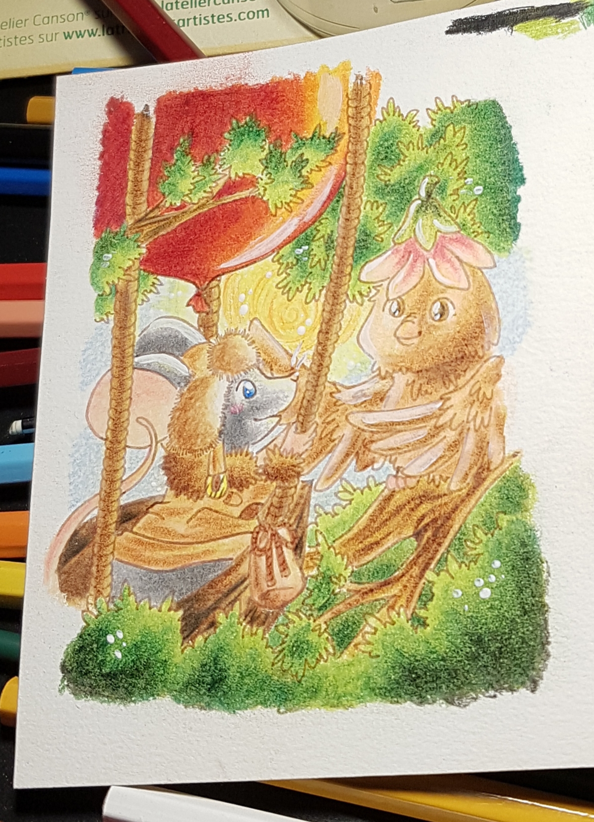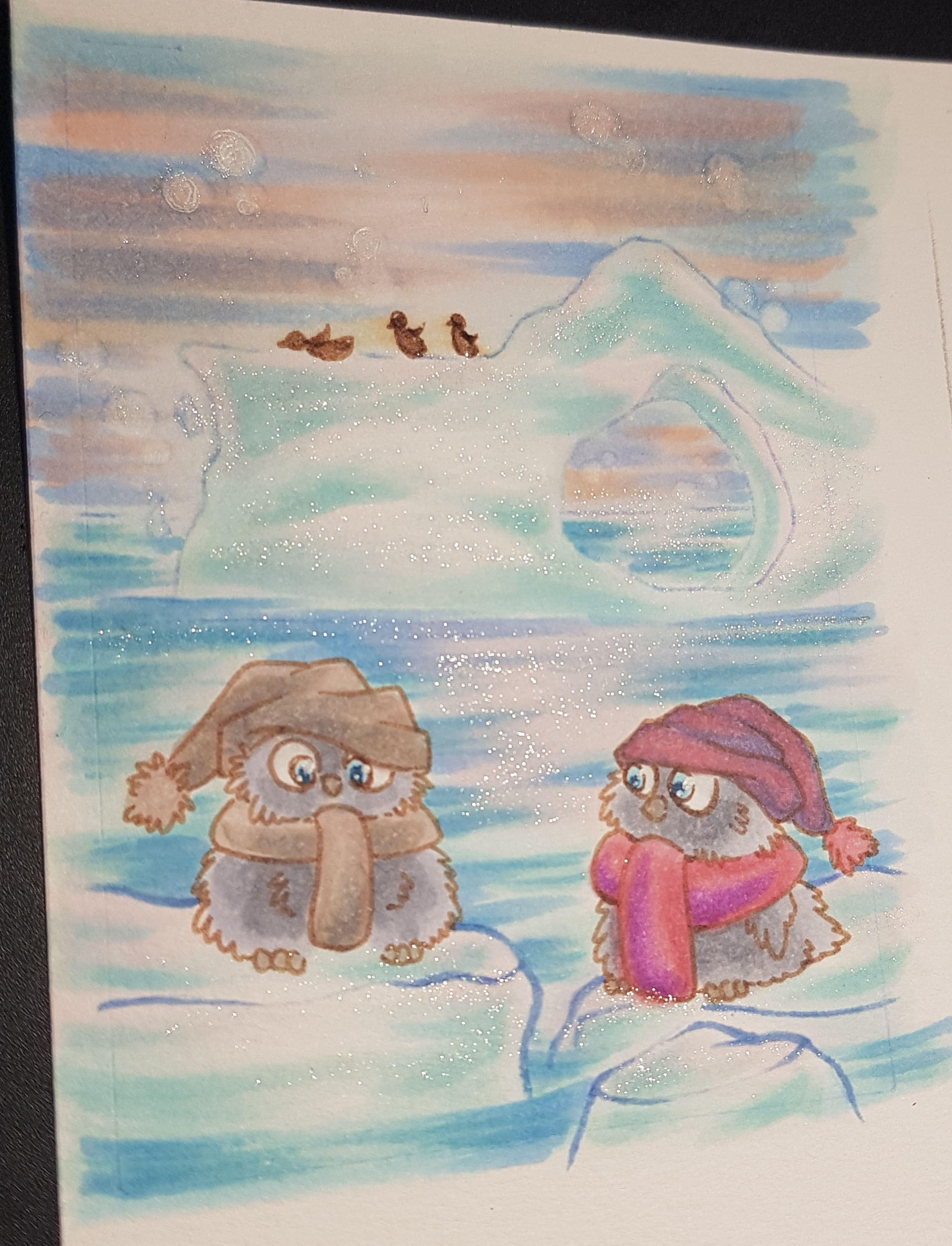 Erste Karte komplett fertig (Buntstifte auf falschem Papier hat viel zu viel Zeit gekostet)