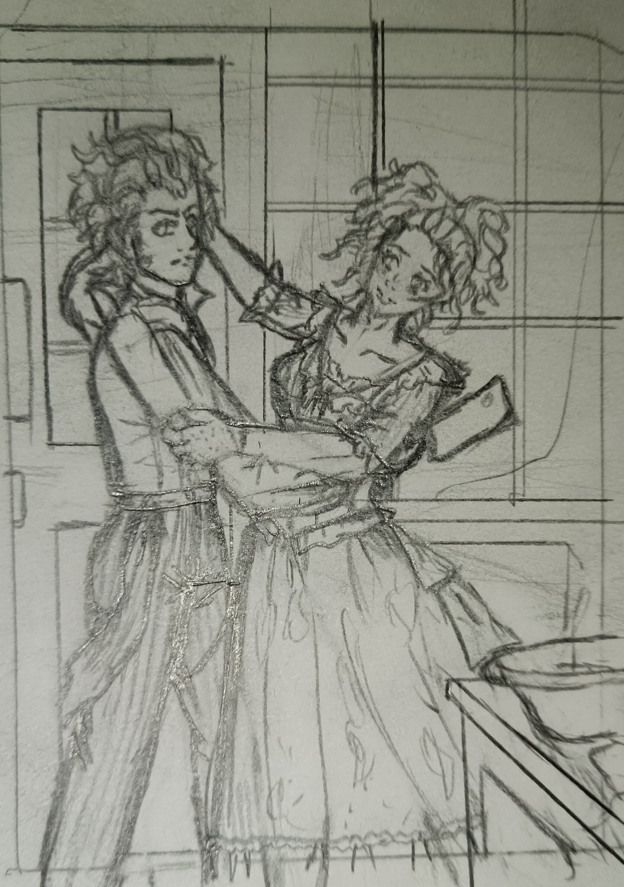@SaphiraKyoko das ist eine sehr schöne Skizze, vor allem durch die dynamischen Posen und den (fast) Full Body. Ich bin gespannt auf die Umsetzung