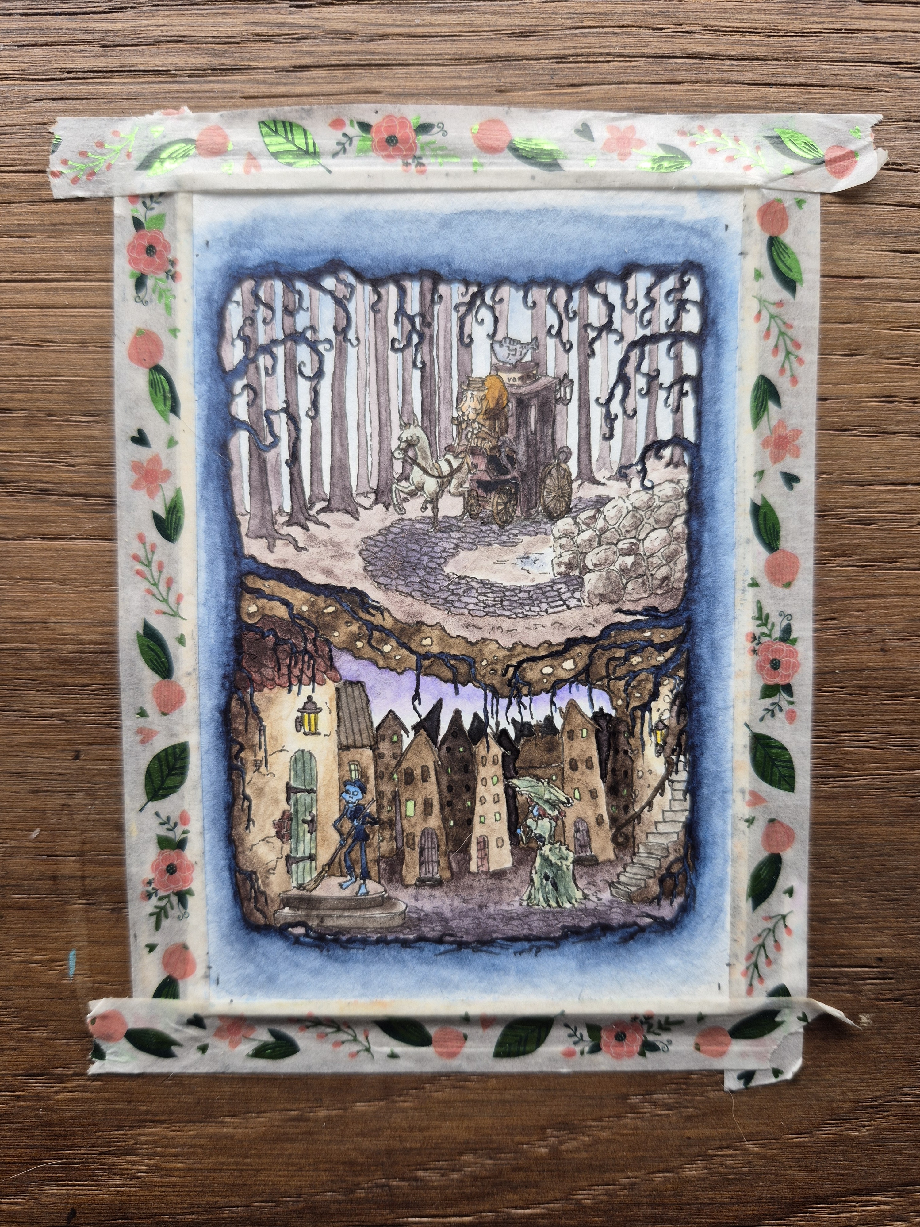 Bei Karte drei bin ich mir noch nicht sicher zu welchem Werk. Ich liebäugele sehr mit Alice im Wunderland, aber auch Dark Side ist sehr cool