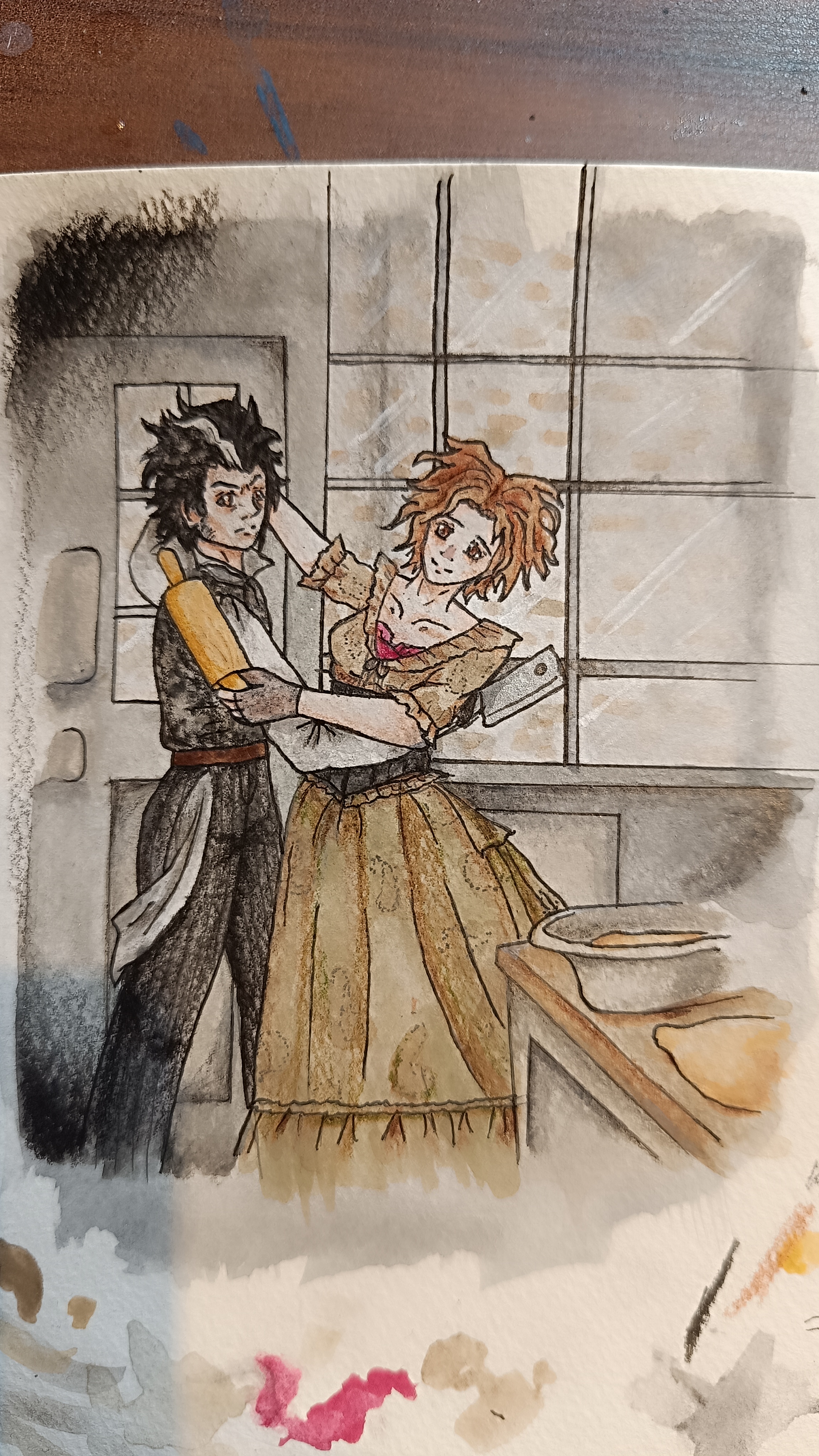 Meine Sweeney Todd Karte ist jetzt auch coloriert. Sie muss nur noch zugeschnitten werden, wenn sie soweit in Ordnung ist?