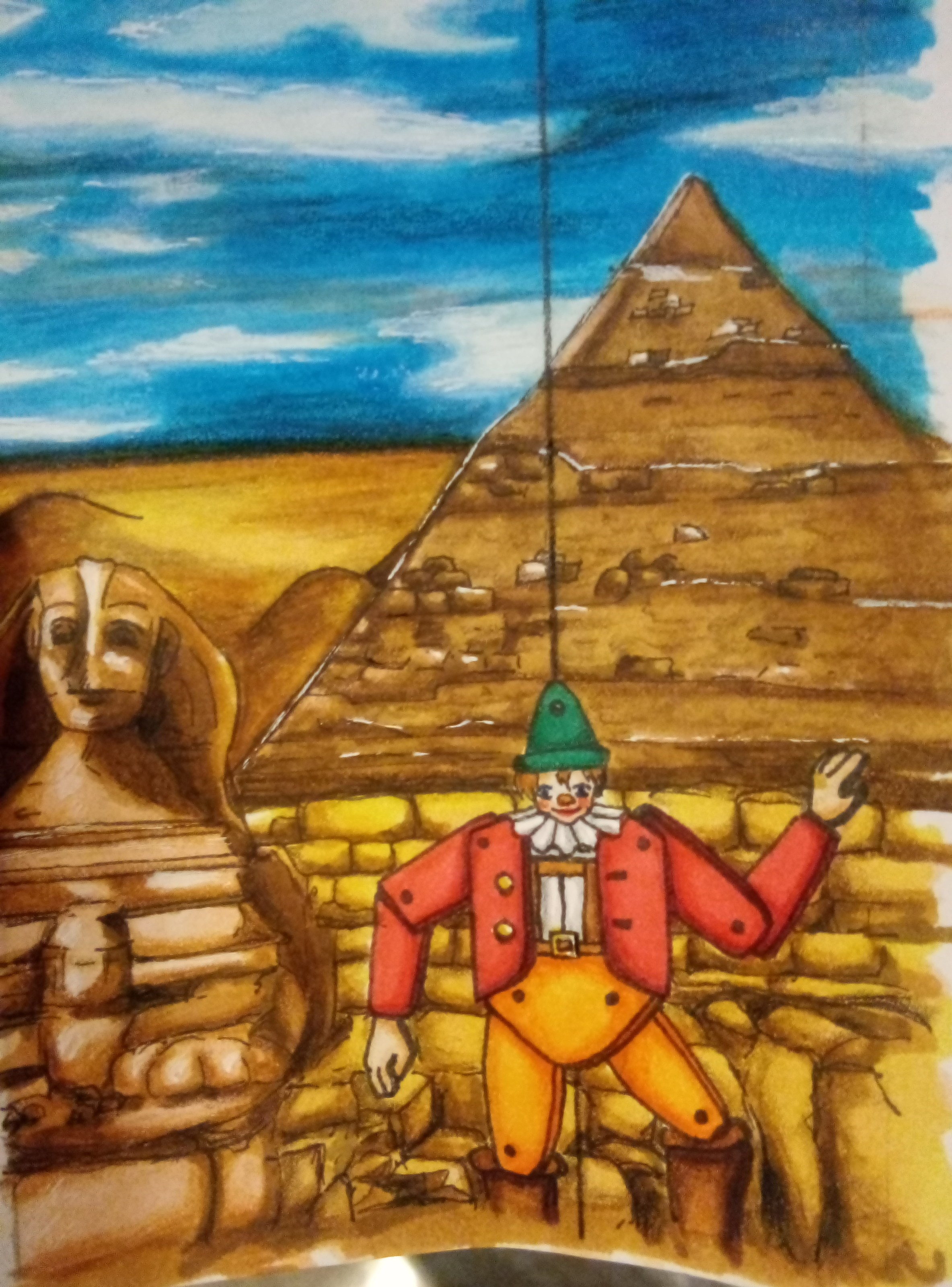 Und meine dritte Skizze. Das ist der Hampelmann “Kaspar Larifari”