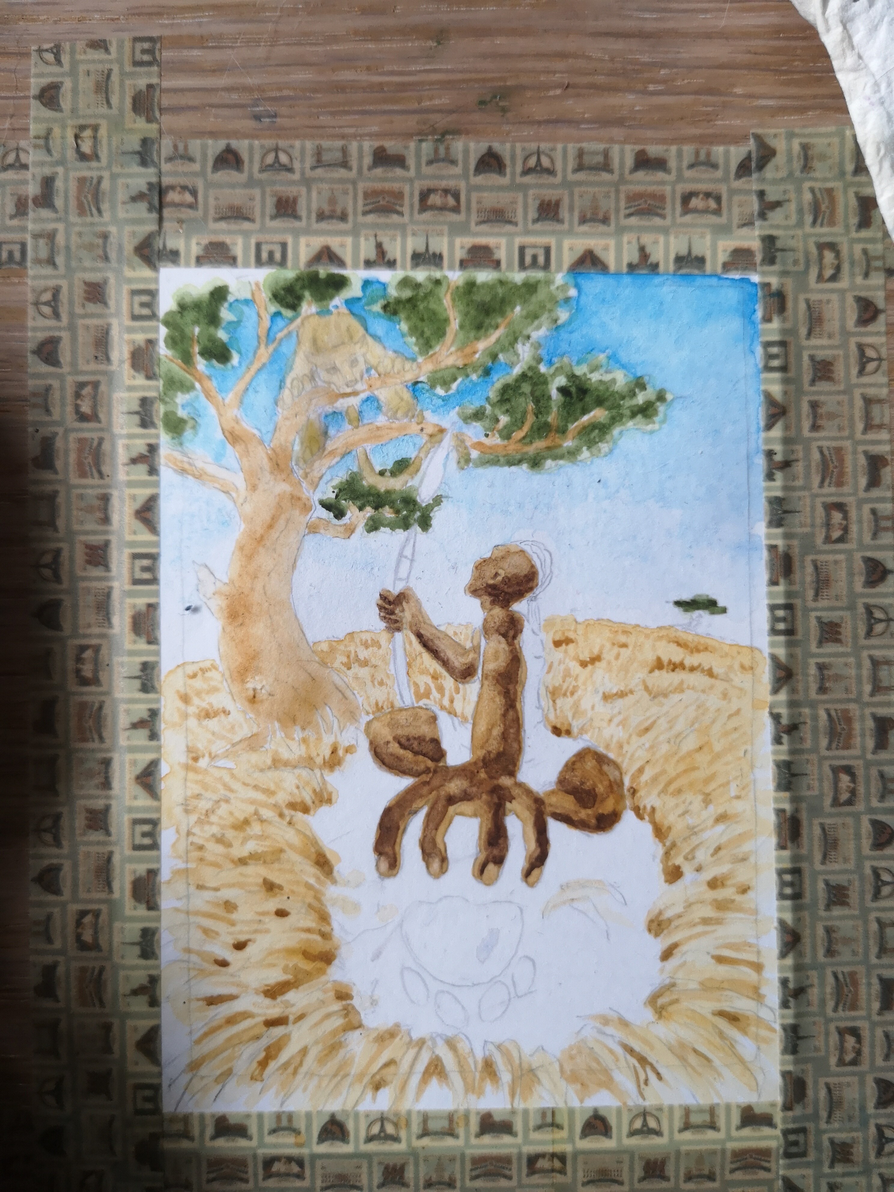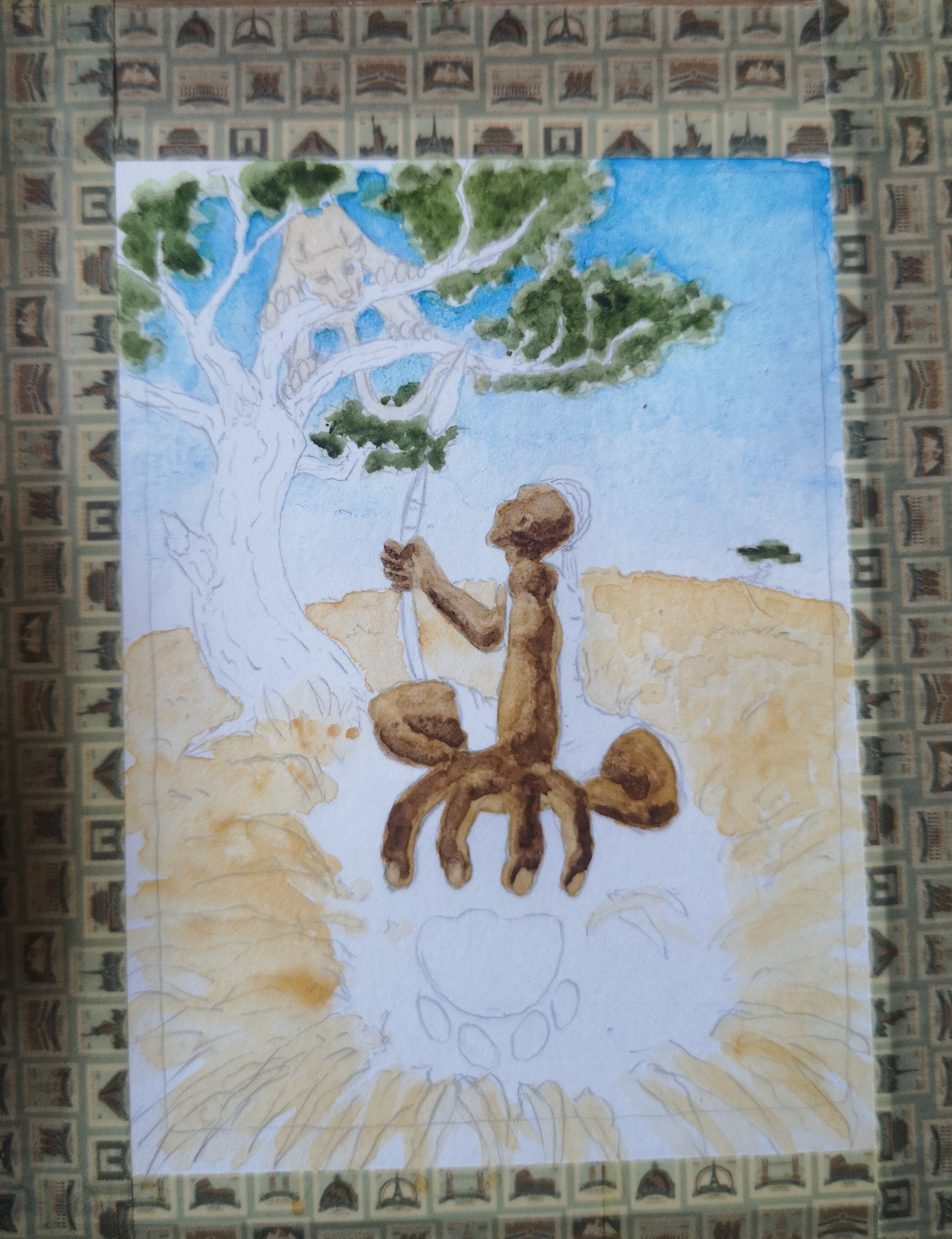 - Vielleicht eine ungewöhnliche/starke Lichtstimmung? Dann könnte man z.B. die Schattensetzung auf strukturierten (Fell) vs. glatten (Hand) Oberflächen üben und auch mit der Anatomie der Handmuskulatur müsste man sich für die Schattensetzung extra genau auseinandersetzen.