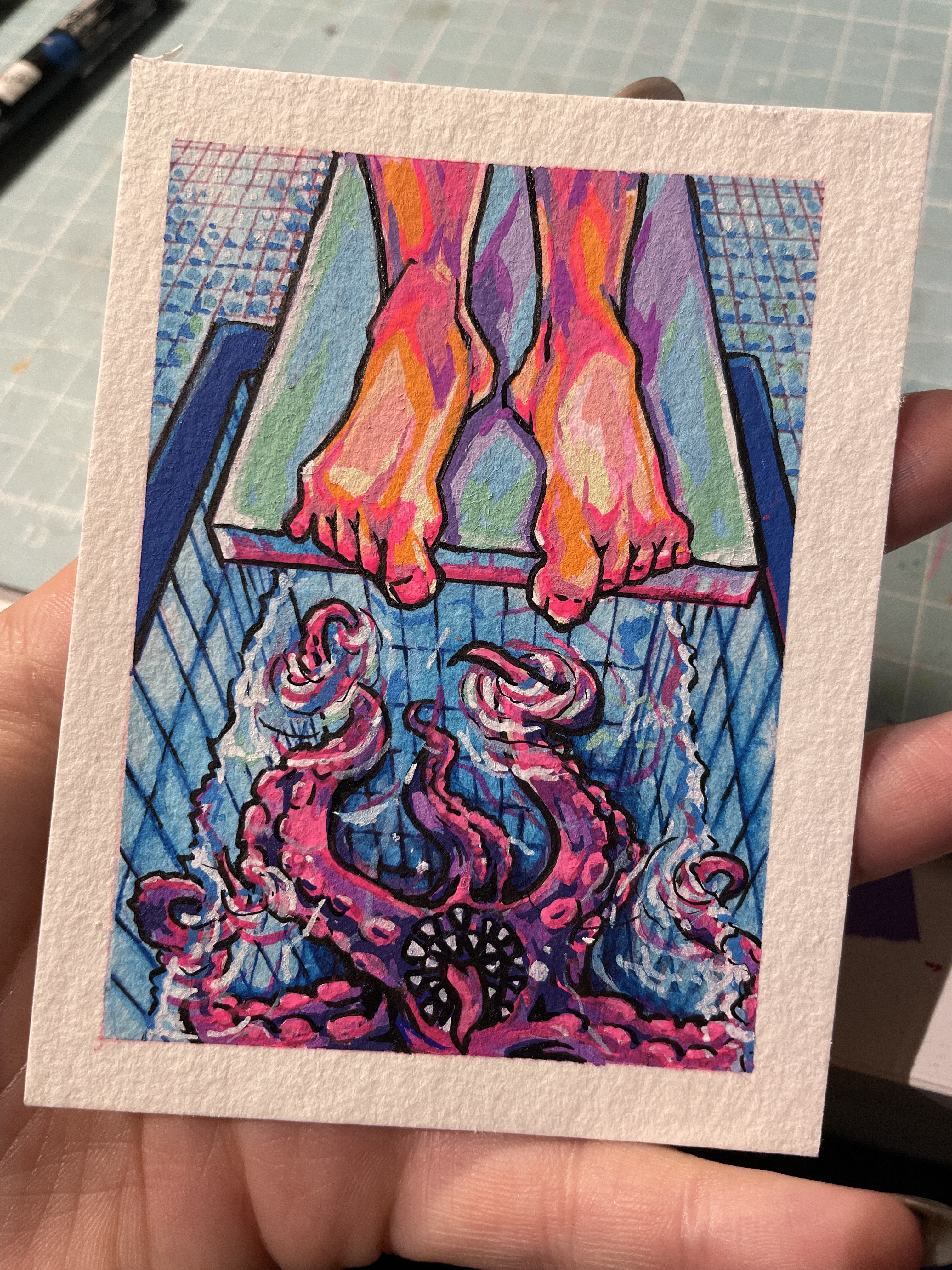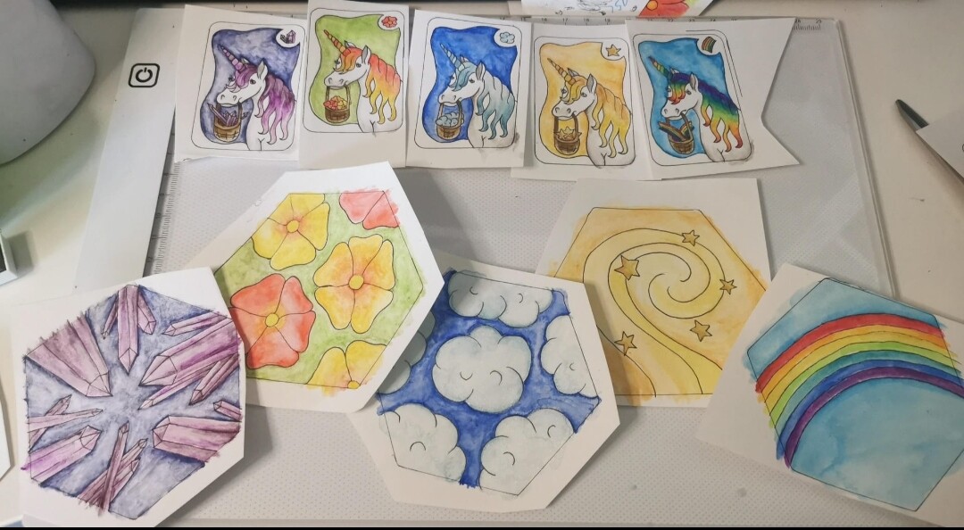 Sorry, dass ich mich so lang nicht gemeldet habe. Ich hatte leider einen heftigen Krankheitsschub. Die Hand-Karte ist fast fertig. Die andere Karte mit dem detailreichen Hintergrund will ich mit Aquarell malen. Dafür habe ich für ein anderes Projekt ebenfalls aquarell genutzt um nochmal mehr gefühl dafür zu bekommen. Das sind die ergebnisse