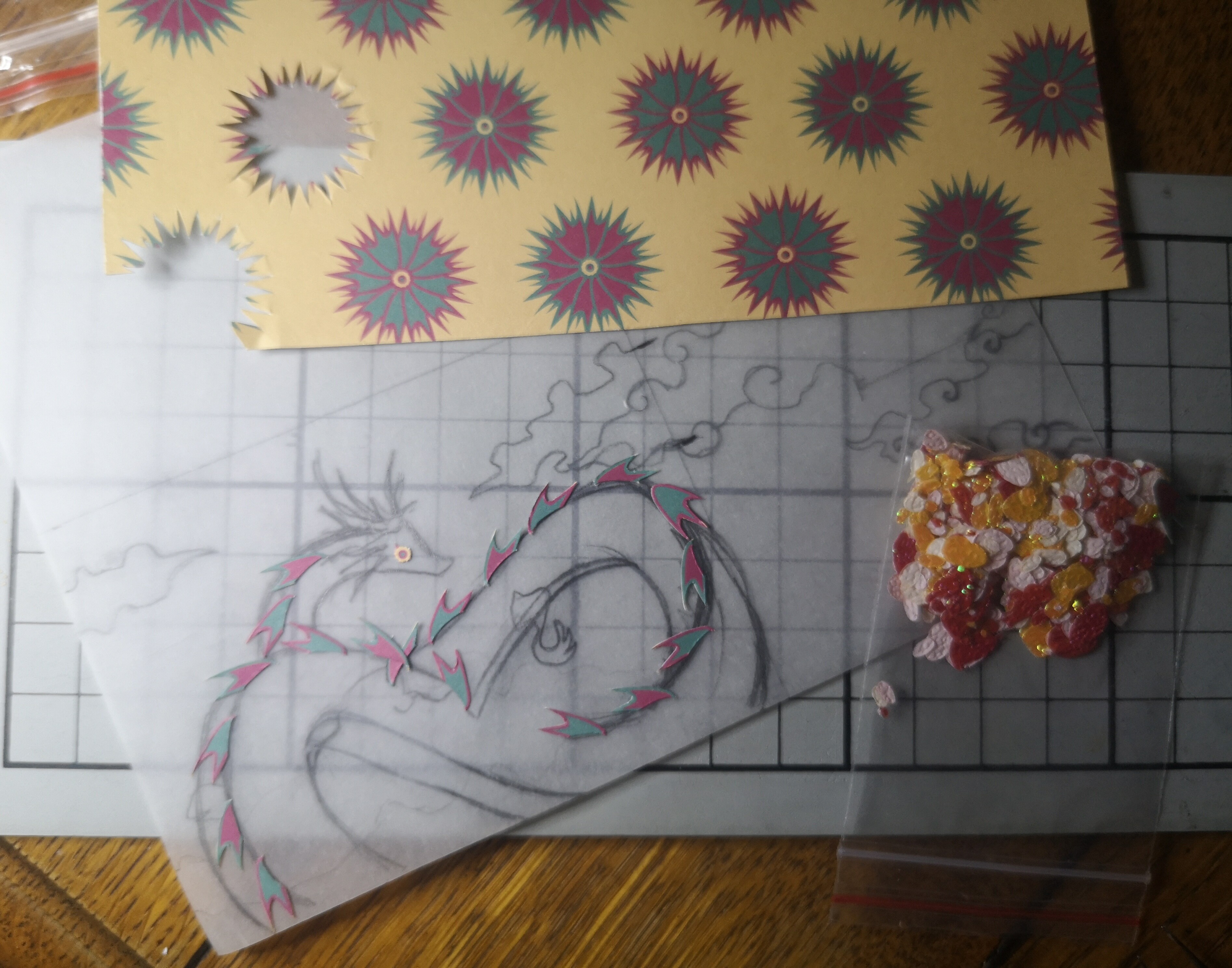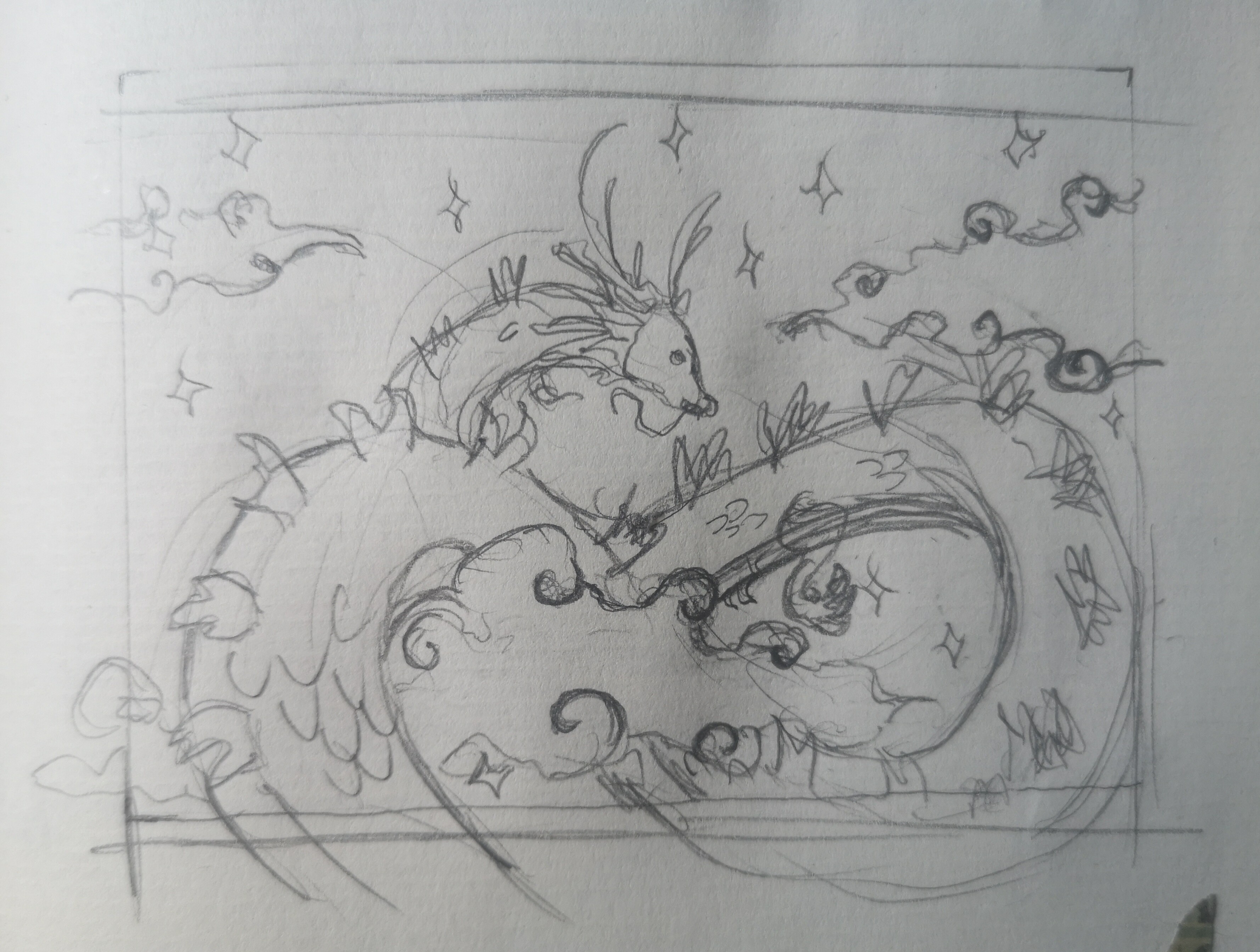 @Dragora: Wäre das als Motiv für die Wundertüte okay oder zu nah an Komfortzone? Ich würde dem Drachen gerne richtige Schuppen verpassen, also einzelne, unterschiedlich große Blättchen, die hoffentlich einen richtigen Verlauf bilden.