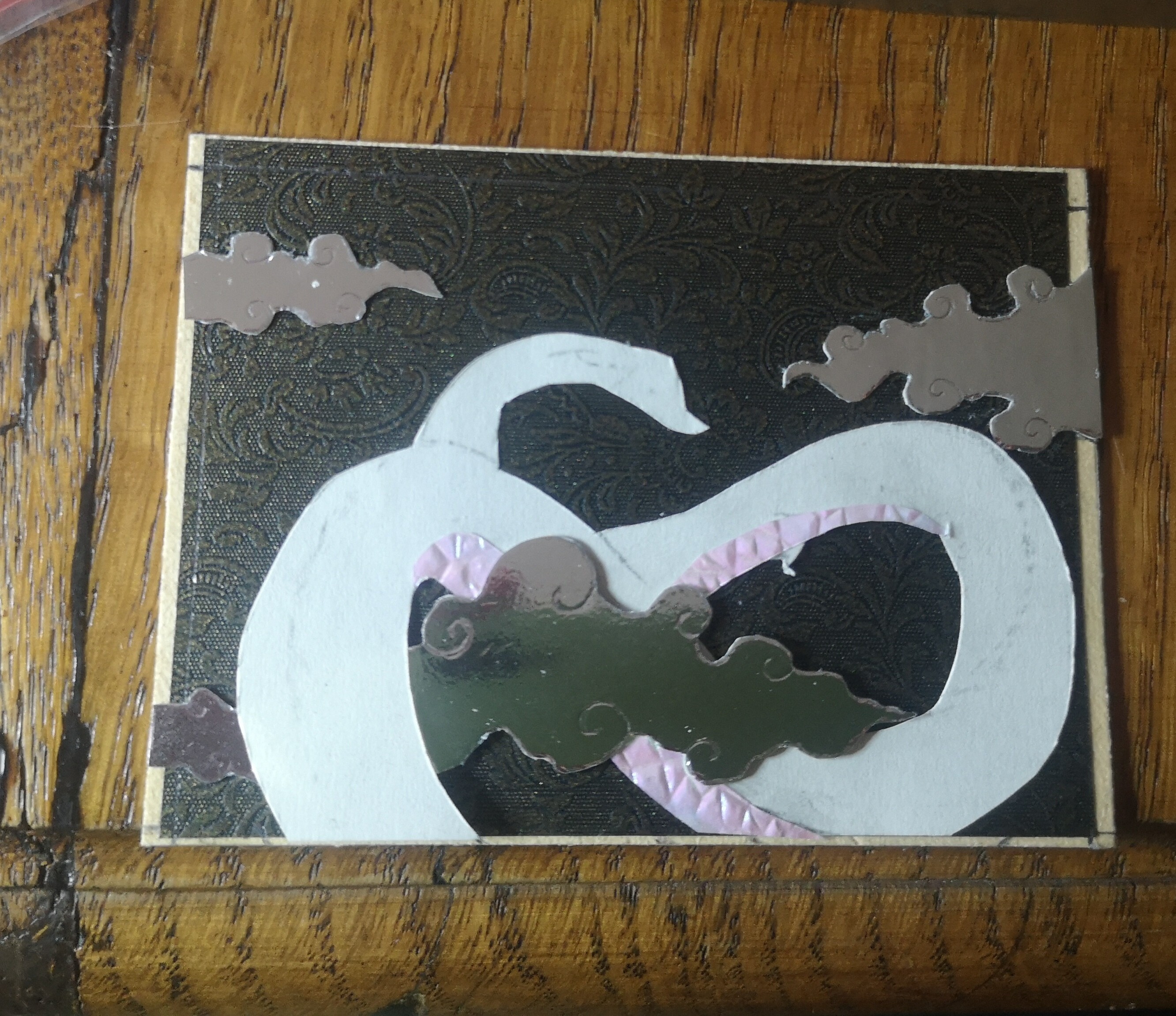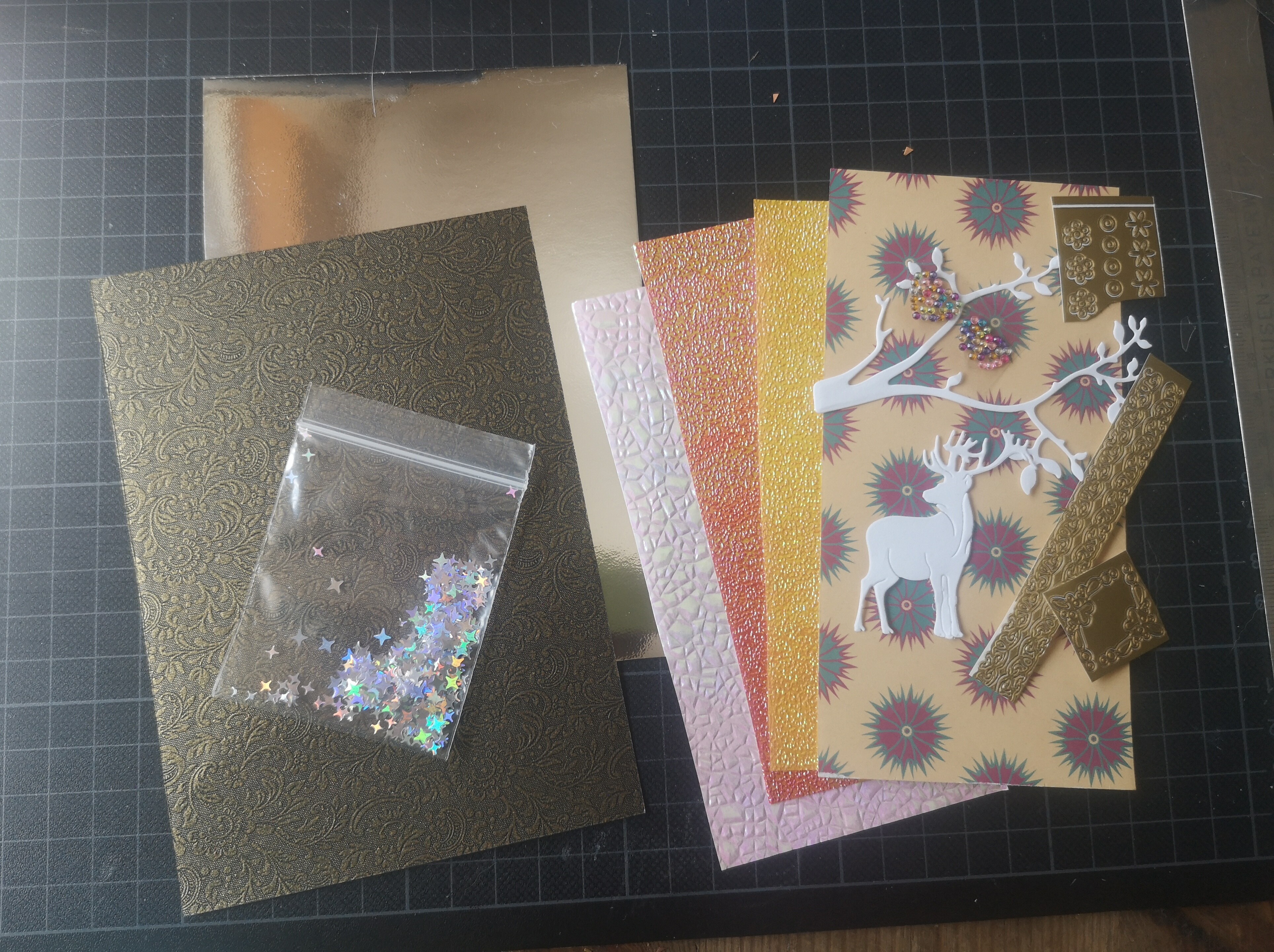 Ich hab mich jetzt mal den Materialien zugewandt, die eher weniger bis gar nicht meiner Komfortzone entsprechen. Fancy Glitzer/ Changchierend/ Schimmer/ Spiegel/ Muster. Ich habe bereits eine Idee zu und hoffe, es klappt.