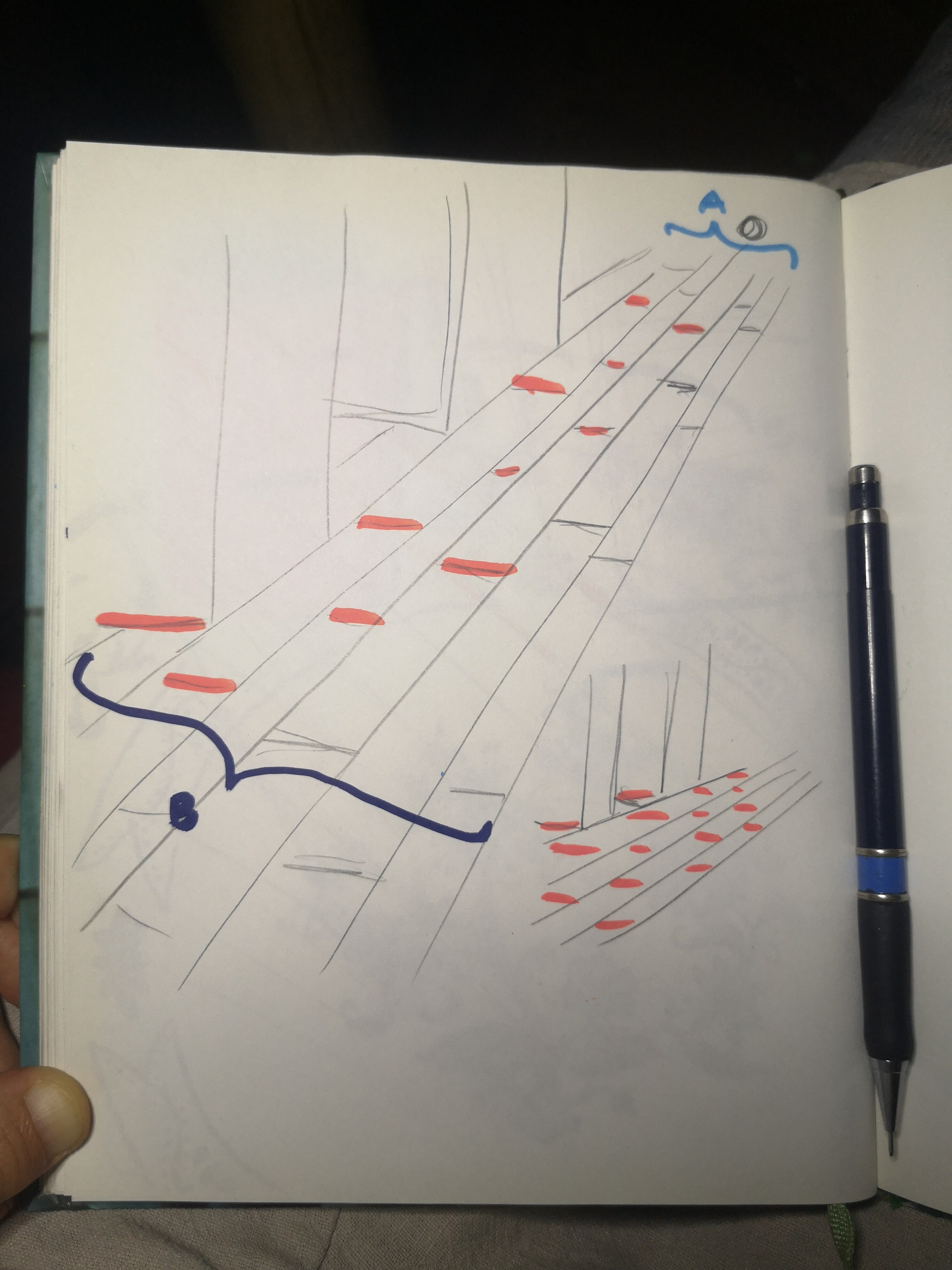 Okay. Nochmal. Hab selber kurz gebraucht. Also. Die Dielen am Boden. Aktuell sehen die nach Draufsicht aus, was optisch verwirrend ist.