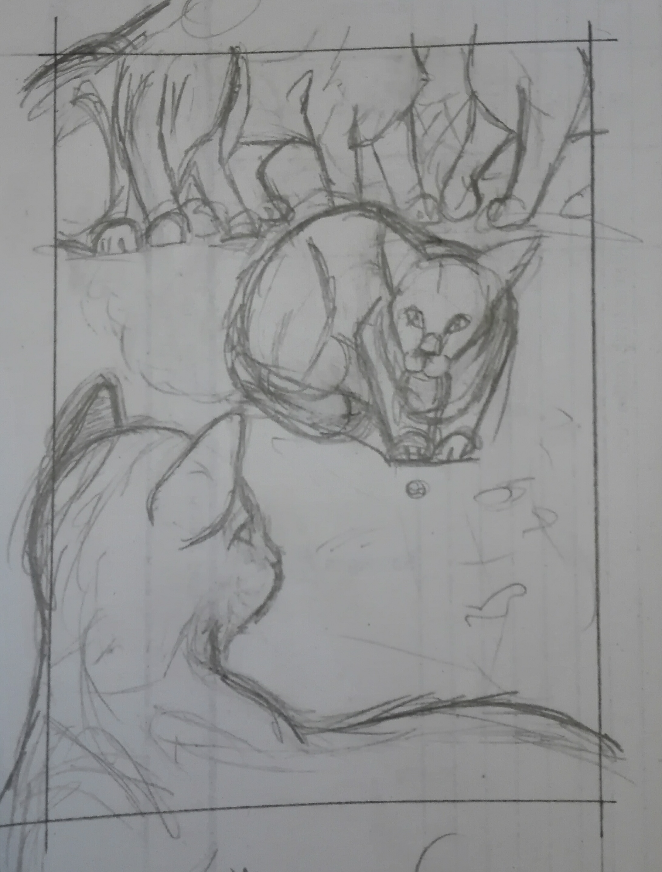 Die Skizze ist auf jeden Fall in Ordnung. Schön, dass du dich gleich an eine so anspruchsvolle Szene gewagt hast.