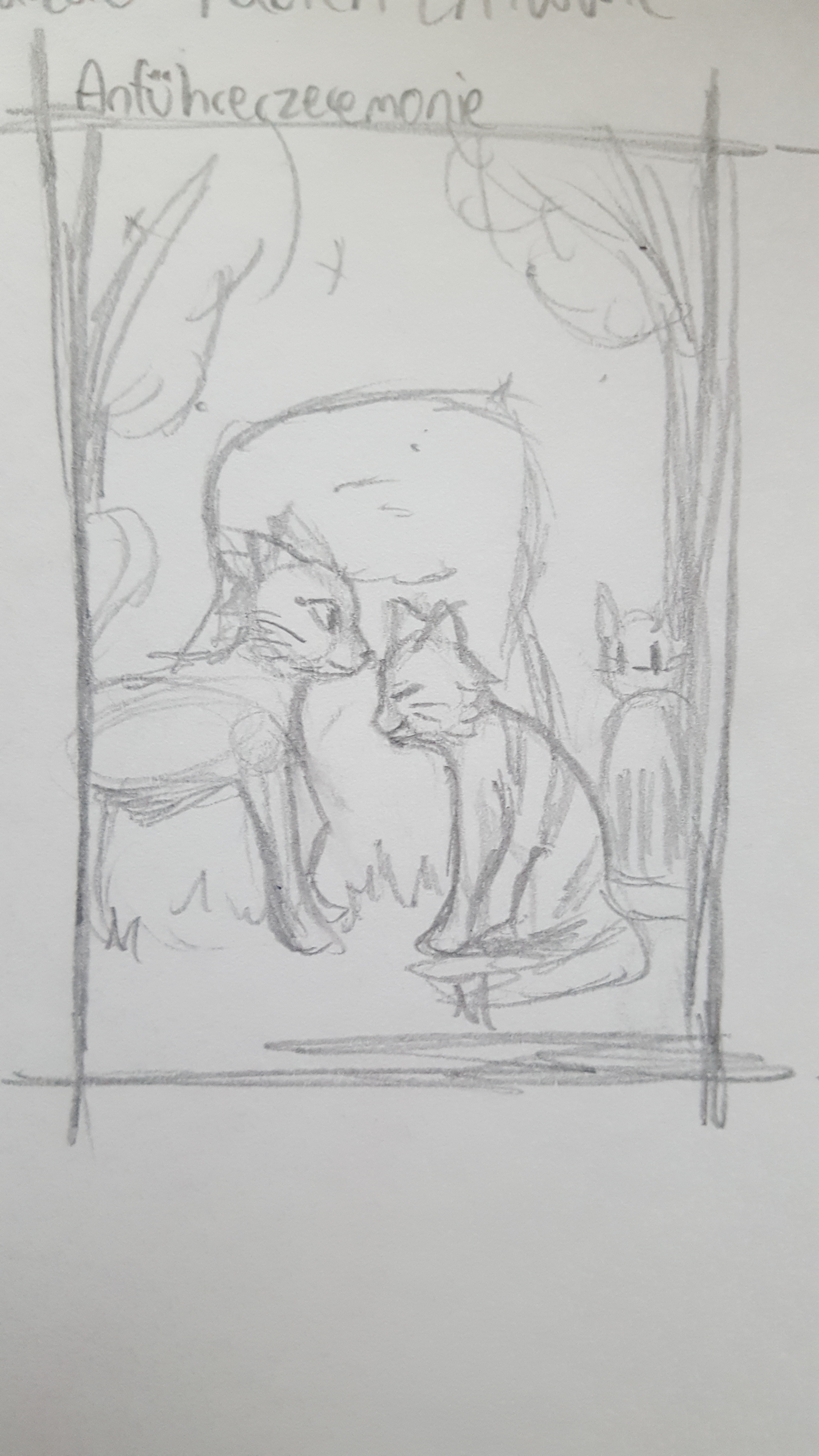 Den Rahmen werde ich noch ein Stück nach links versetzen. Wenn ich die Skizze fertig ausgearbeitet habe, werde ich sie auf mein Aquarellpapier übertragen und nochmal ein Bild von den klaren Outlines posten.