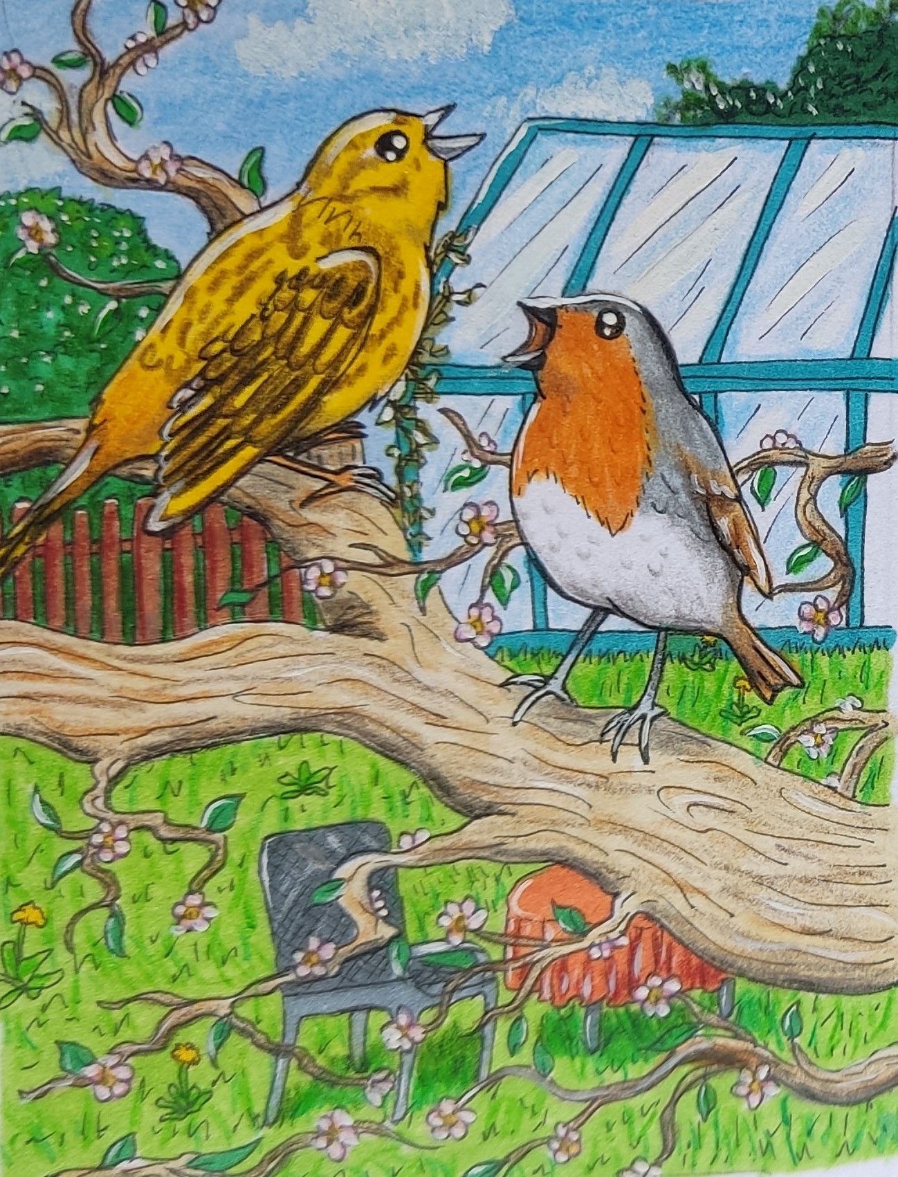So Skizze für April ist fertig. Das Motiv hat echt Spaß gemacht