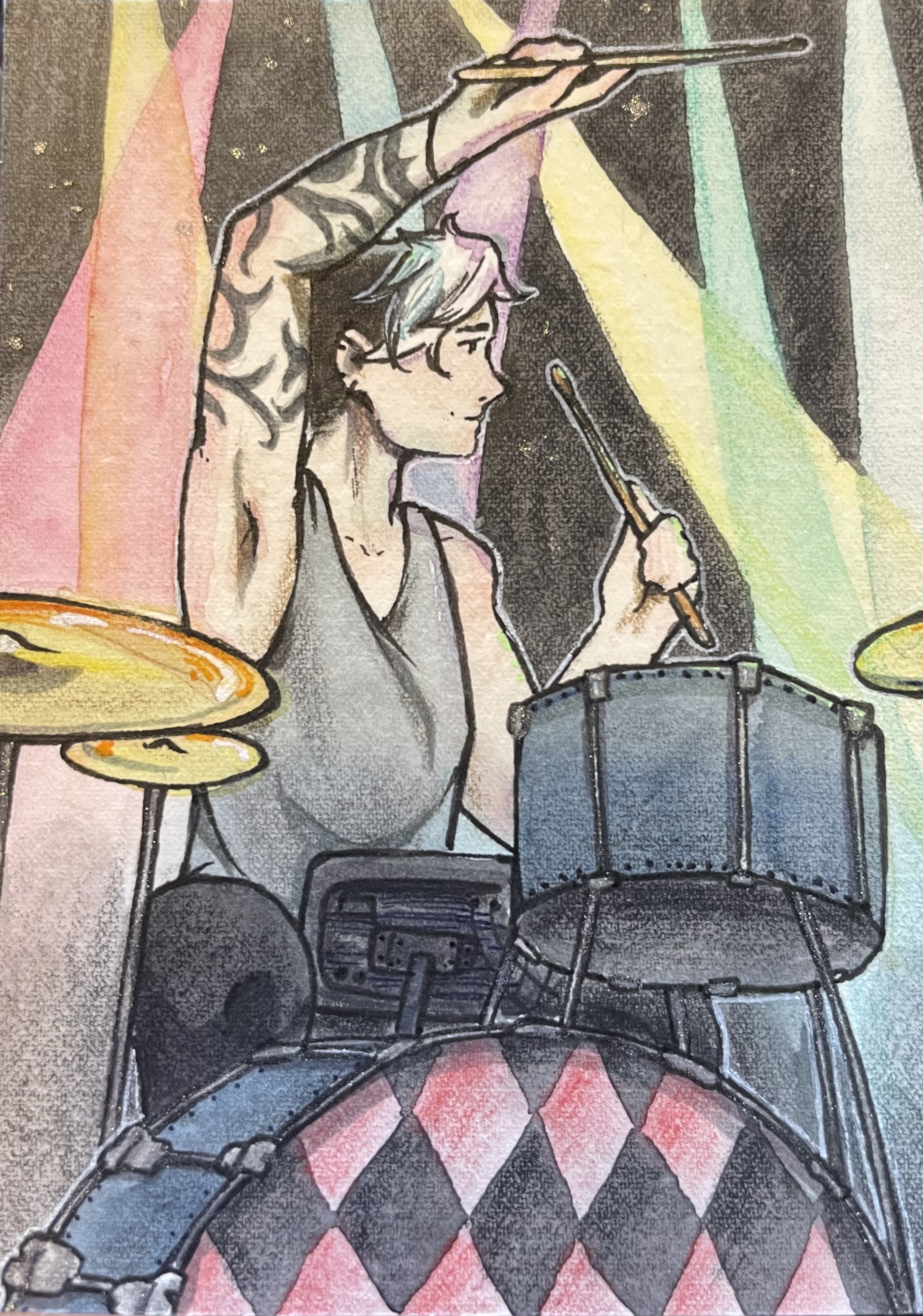 Ich finde sowohl Marker, Buntstifte als auch Aquarelle sehr wunderbar, es darf auch gerne glitzern. Bastelkarten bzw. Karten auf die zu viele (verschiedene) Materialien aufgeklebt sind, sind oft eher weniger meins.