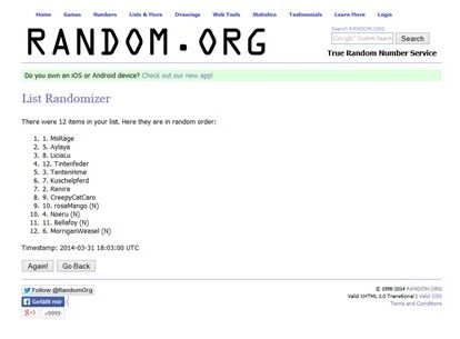 P.S.: MiiRage: wie machst du das immer? Ich musste so lachen, als random.org mir deinen Namen als erstes ausgespuckt hatte XD