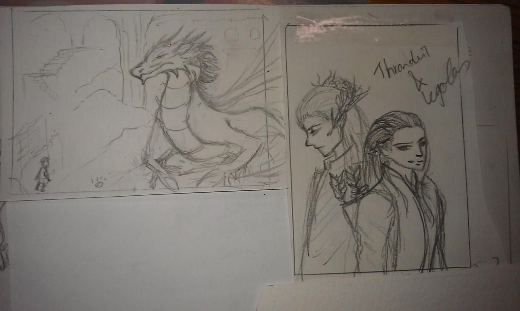 @Papierstern: Die Größenverhätnisse in der Smaug-Karte mag ich. Die Halle und der Drache wirken riesig. Bei der Anderen Karte finde ich das Kinn von Legolas noch nicht ganz stimmig. Ich glaube es könnte etwas mittiger unter dem Mund zulaufen. Ich hoff das ist ok, wenn ich das so anmerke. Ansonsten auch eine tolle Karte. Ich mag es, wie du hier mit Körpersprache arbeitest.