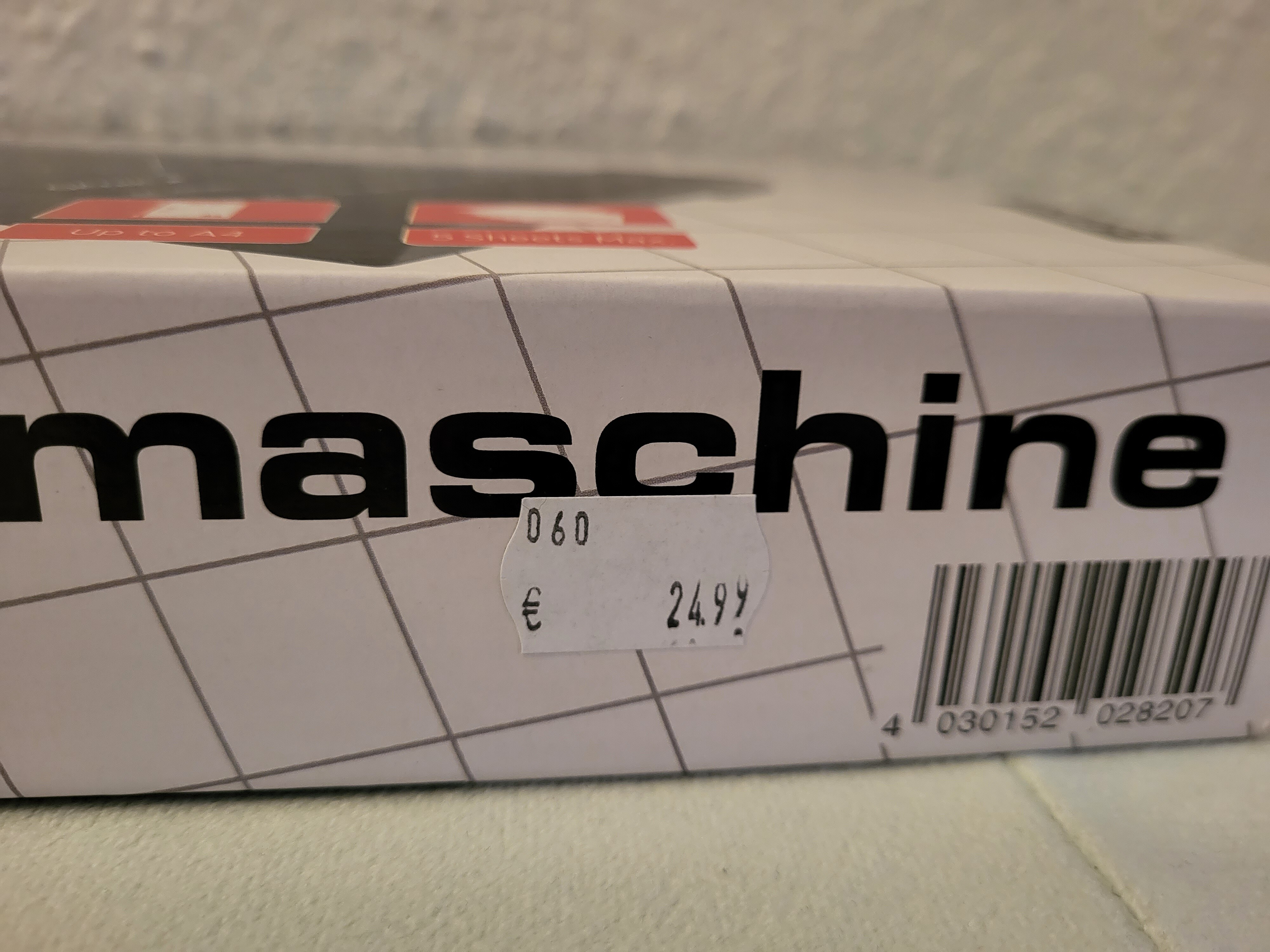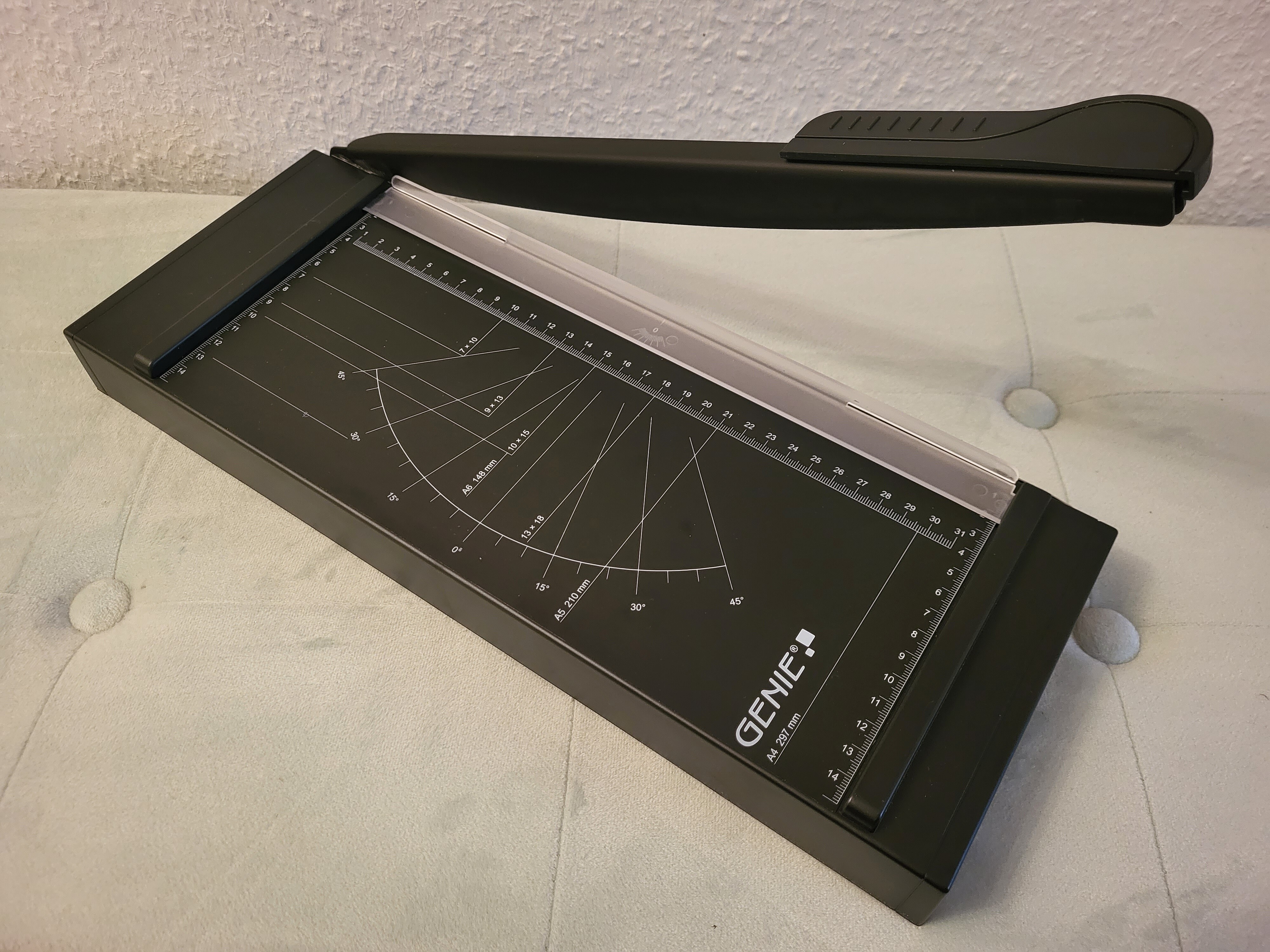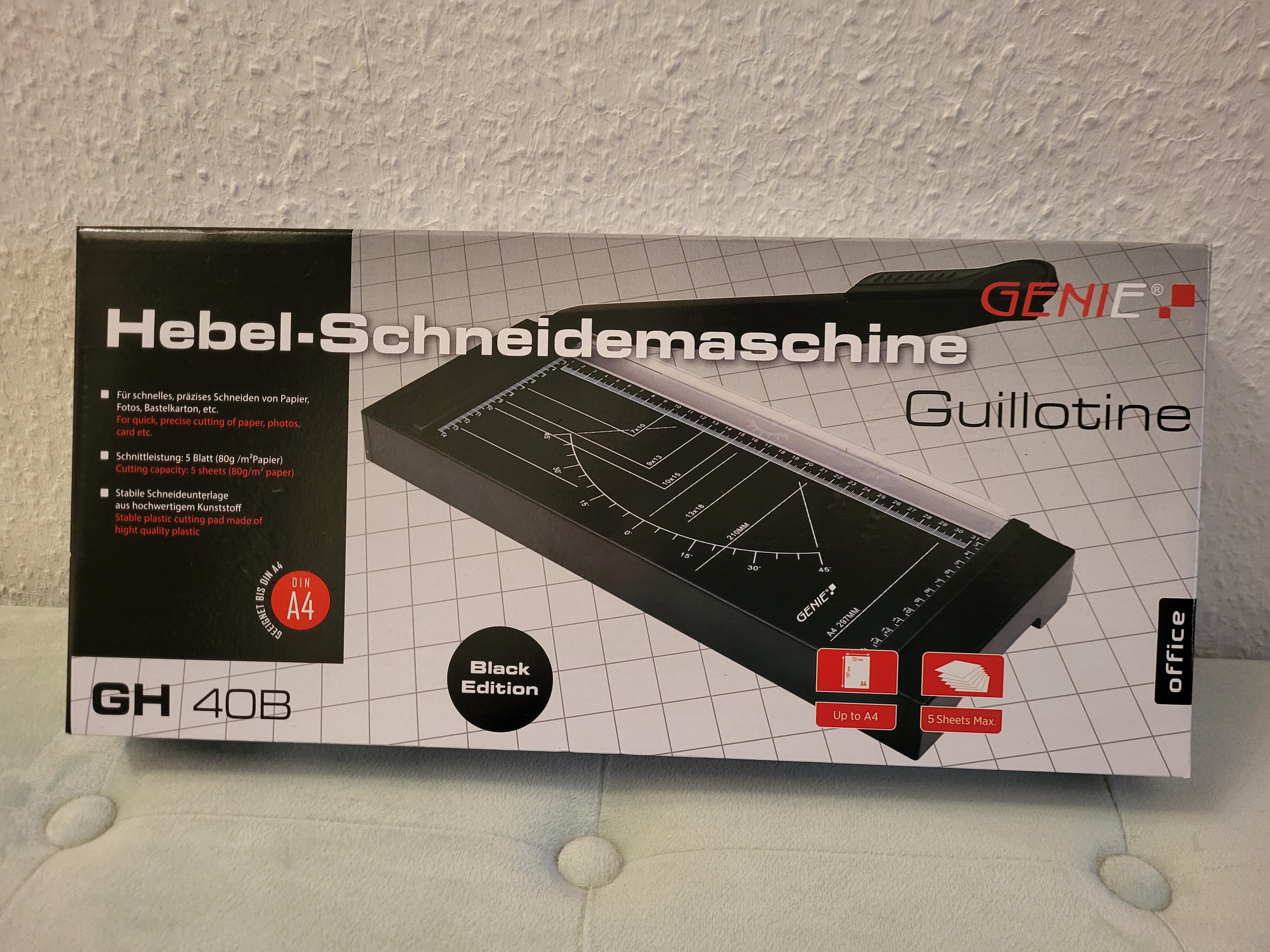 Ich biete eine nagelneue Papier Schneidemaschine an. Da ich bereits eine neue habe, kann diese gerne an bastelfreudige Hände übergeben werden.
