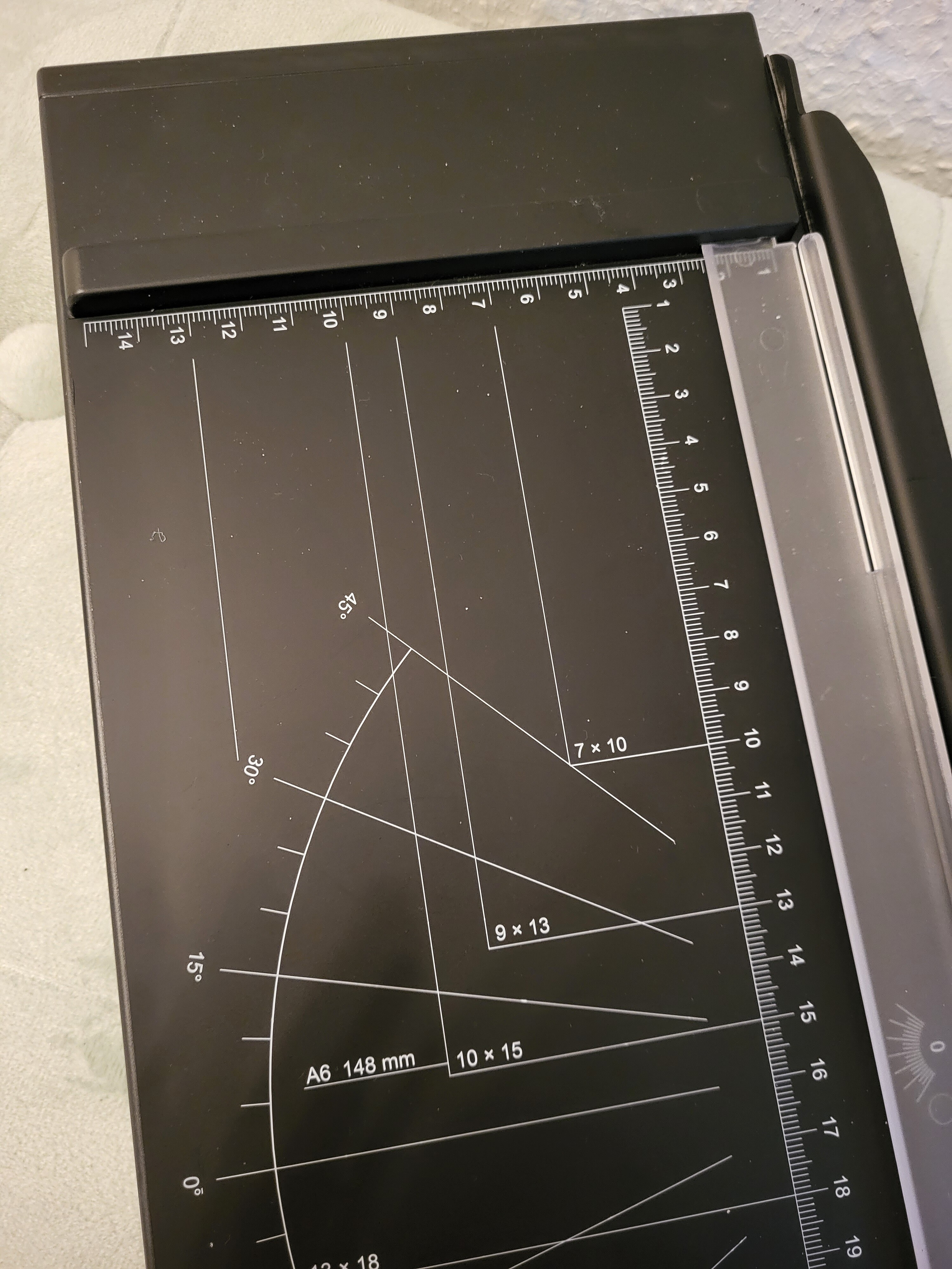 Sie ist perfekt zum schneiden von Kakaokarten geeignet dank Millimeter Angabe, rechtem Winkel und gerader Schnittkante.