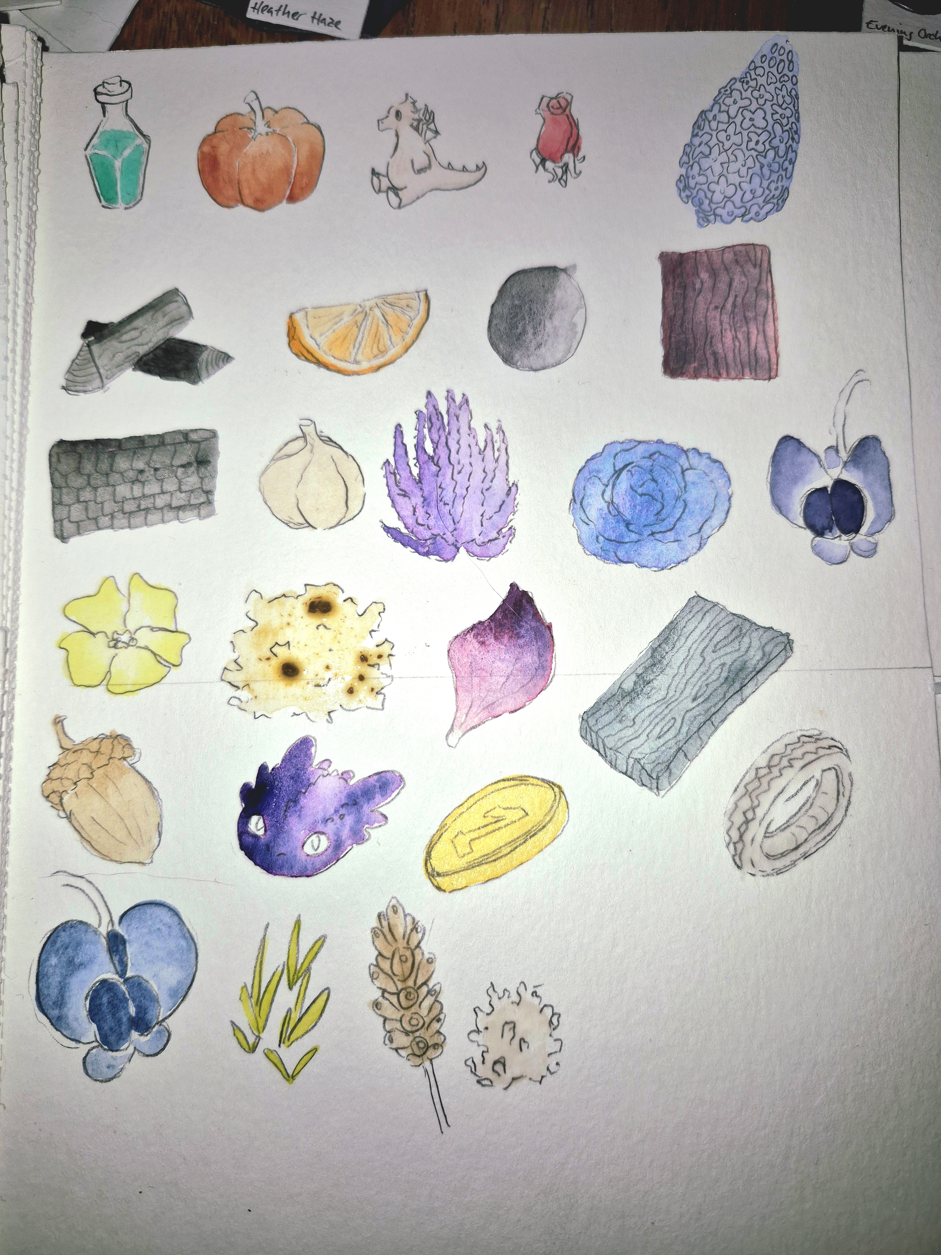 Auch wenn es zu den Bröselfarben gehört mag ich Norwegischer Busch sehr gerne (es geht halt so schön in Richtung Gelbocker) und Acornshell ist ein super Braunton. Ich liebe Gelbgrün, also gehört Spring Green auch zu meinen Favoriten. Die granulierenden Violett-Töne und Shadow Orchid mag ich auch total gerne. Pumpkin Spice und Rosewood gehören glaub ich in ein Farbschema, was ich grundsätzlich gern nutze und ich bin sehr dankbar für Rosebud, einen Rosaton, den ich genau so gut gebrauchen kann xD