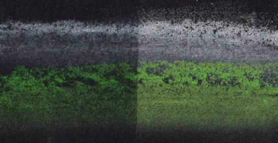 - Heller Untergrund, aber Lagenmischung mit dunkler Farbe lässt die helle Farbe in die dunkle sickern und verschwinden.