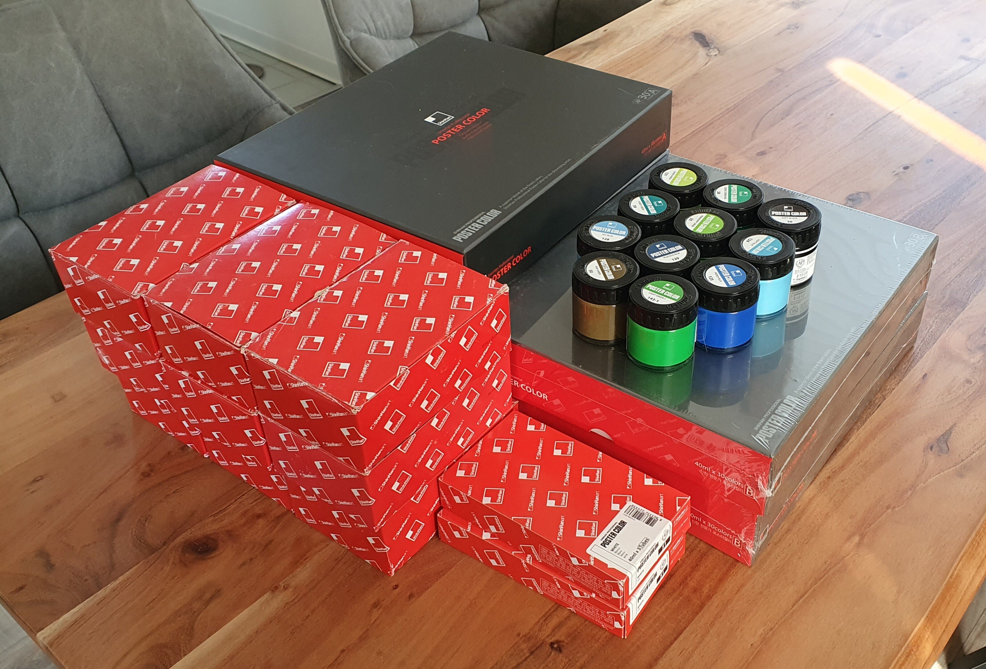 Zu den Farben selbst noch einmal: Hier der Katalog des Großhändlers, in dem ihr die Poster Colors auf Seite 54 findet. Hier die Übersichtsseite von ShinHan selbst, wo ihr auch sehen könnt, welche Farben in den Sets sind.