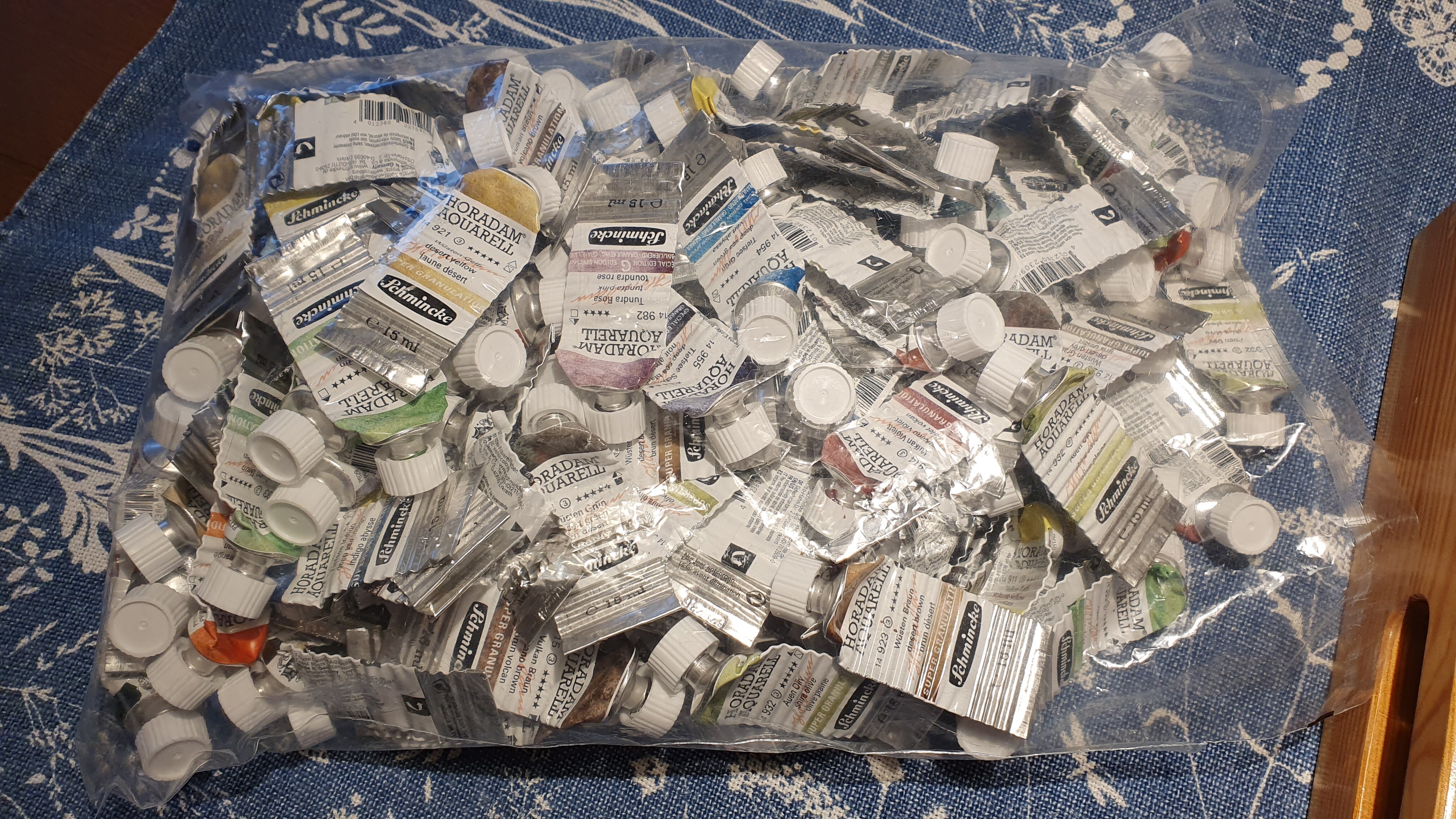 Und so sehen 143 leere Tuben Aquarellfarbe aus :’)