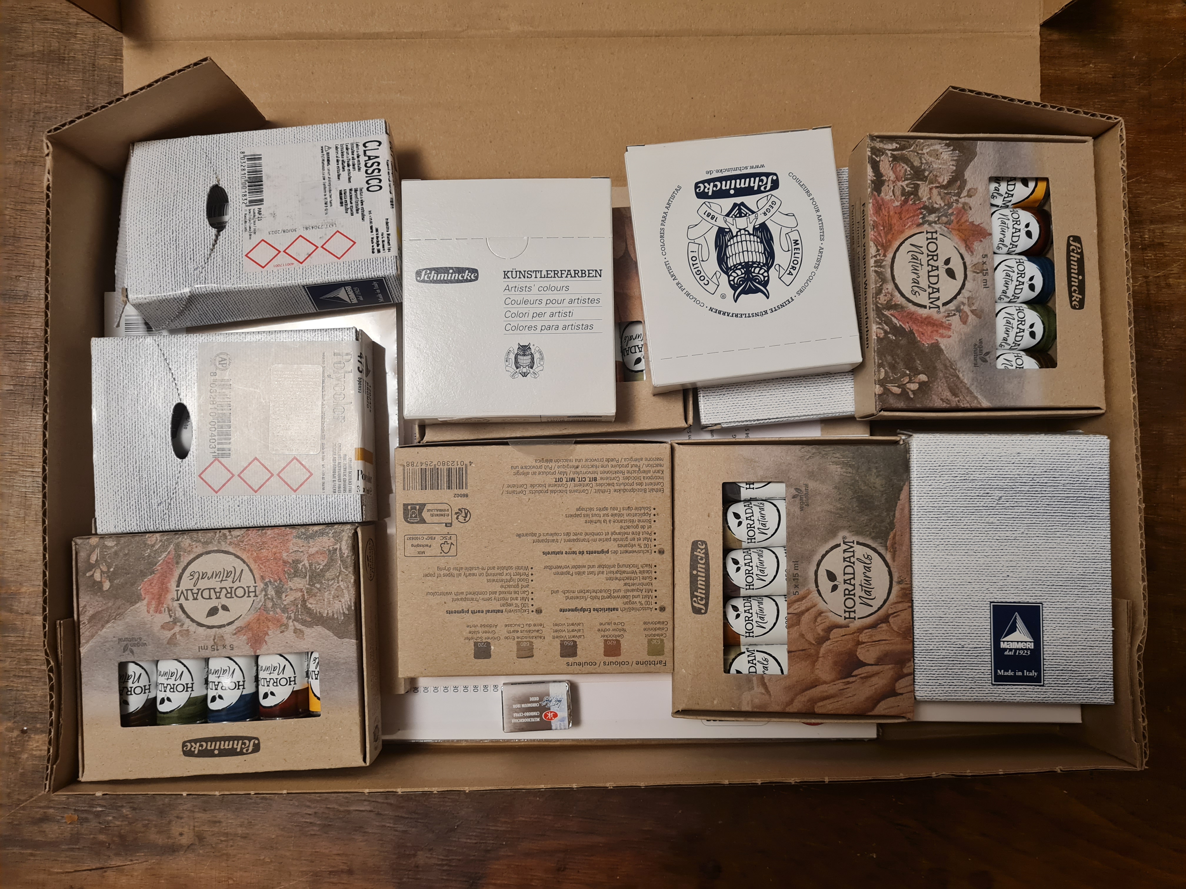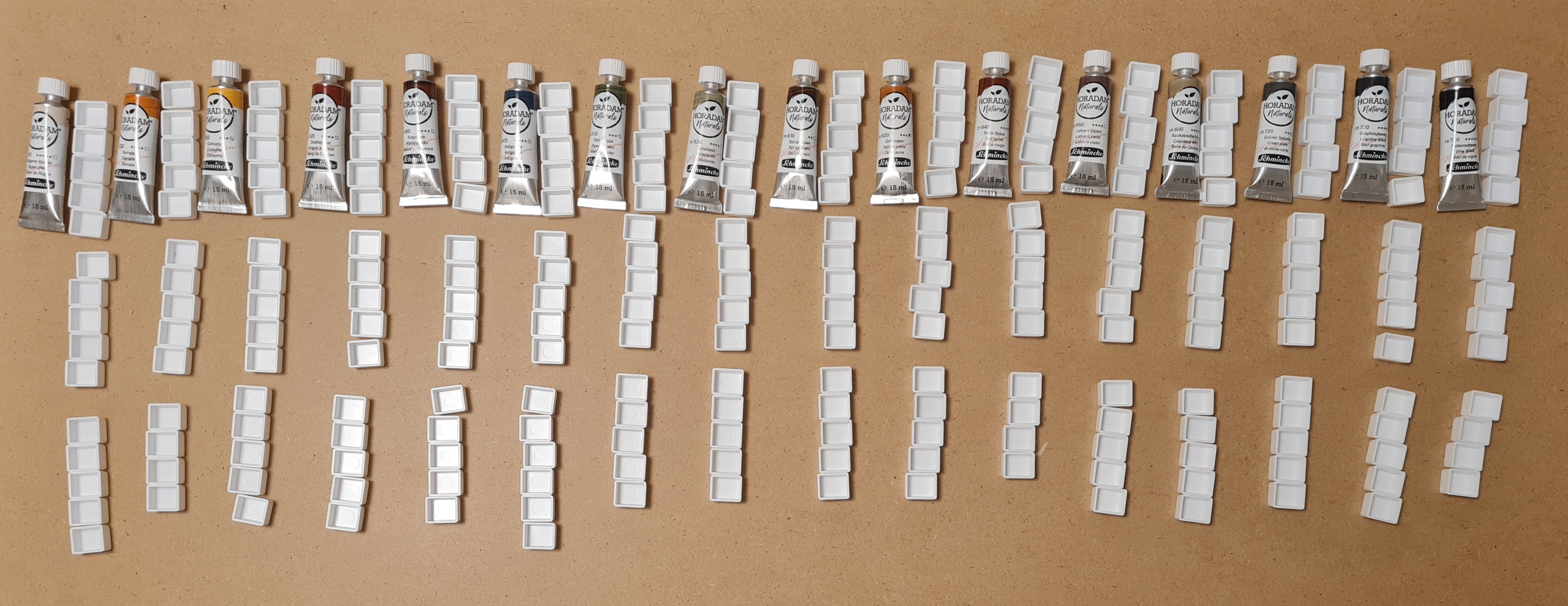 Es geht (nach wie vor) um diese hübschen Aquarellfarben von Schmincke, die es nur in 15ml-Tuben zu kaufen gibt.