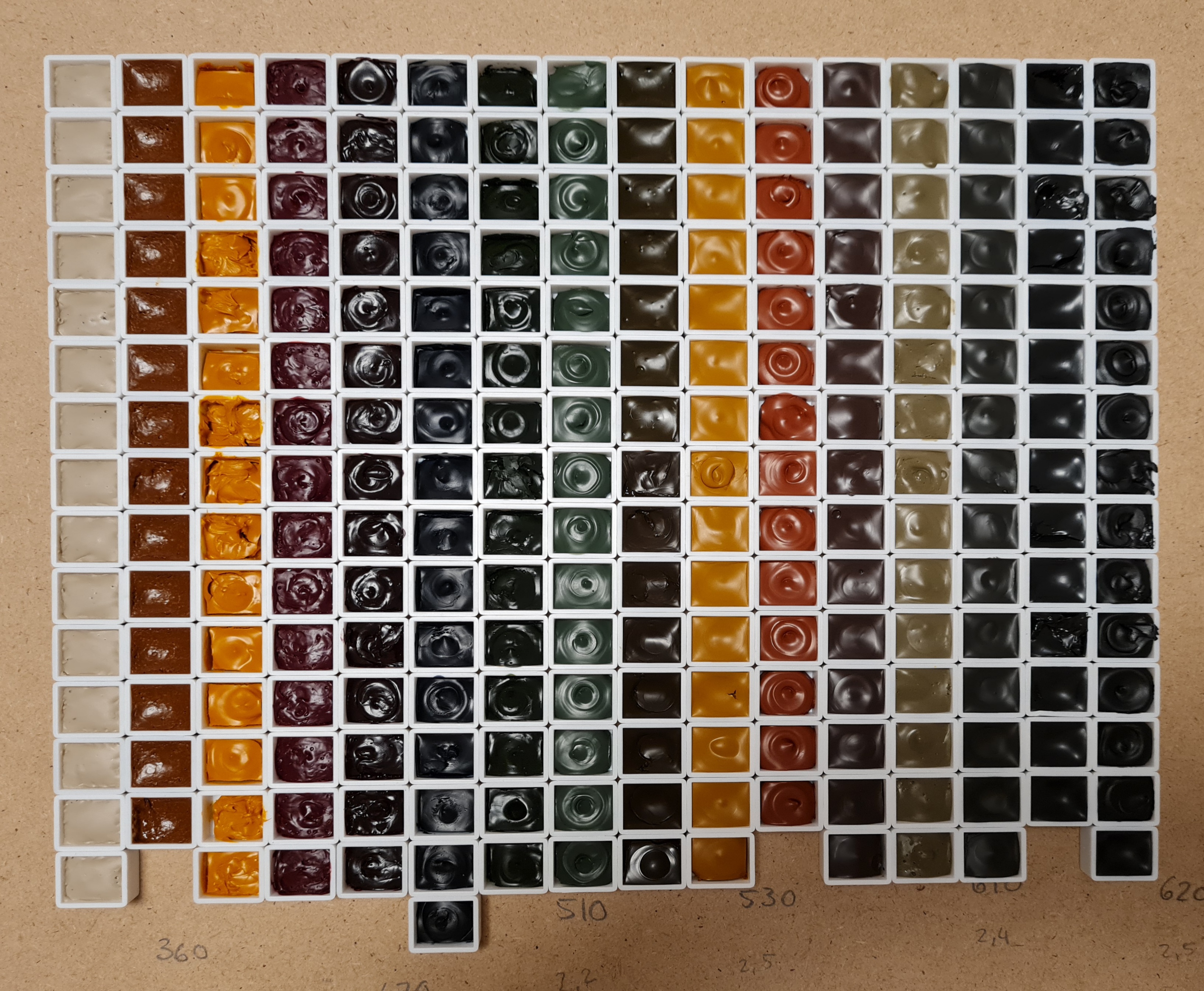 Es gibt insgesamt 16 verschiedene Farben, 10 davon in je 5er-Packs (Minerale und Pflanzen).