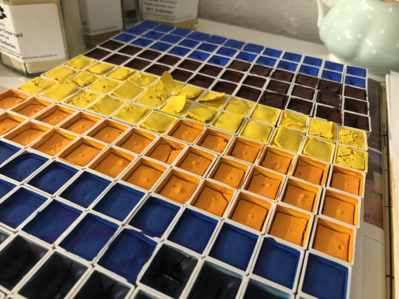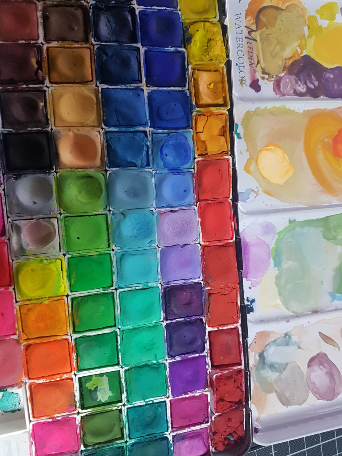 Aquarell ist irgendwie pflegeleichter und lässt sich viel besser wegwaschen, wenn man daneben saut. Allerdings liegt das großteils auch daran, dass ich nur mit Erdpigmenten arbeite, Postercolors aber auch die organischen Pigmente beinhaltet, die eben Verfärbungen hervorrufen. Erdpigmente nicht.