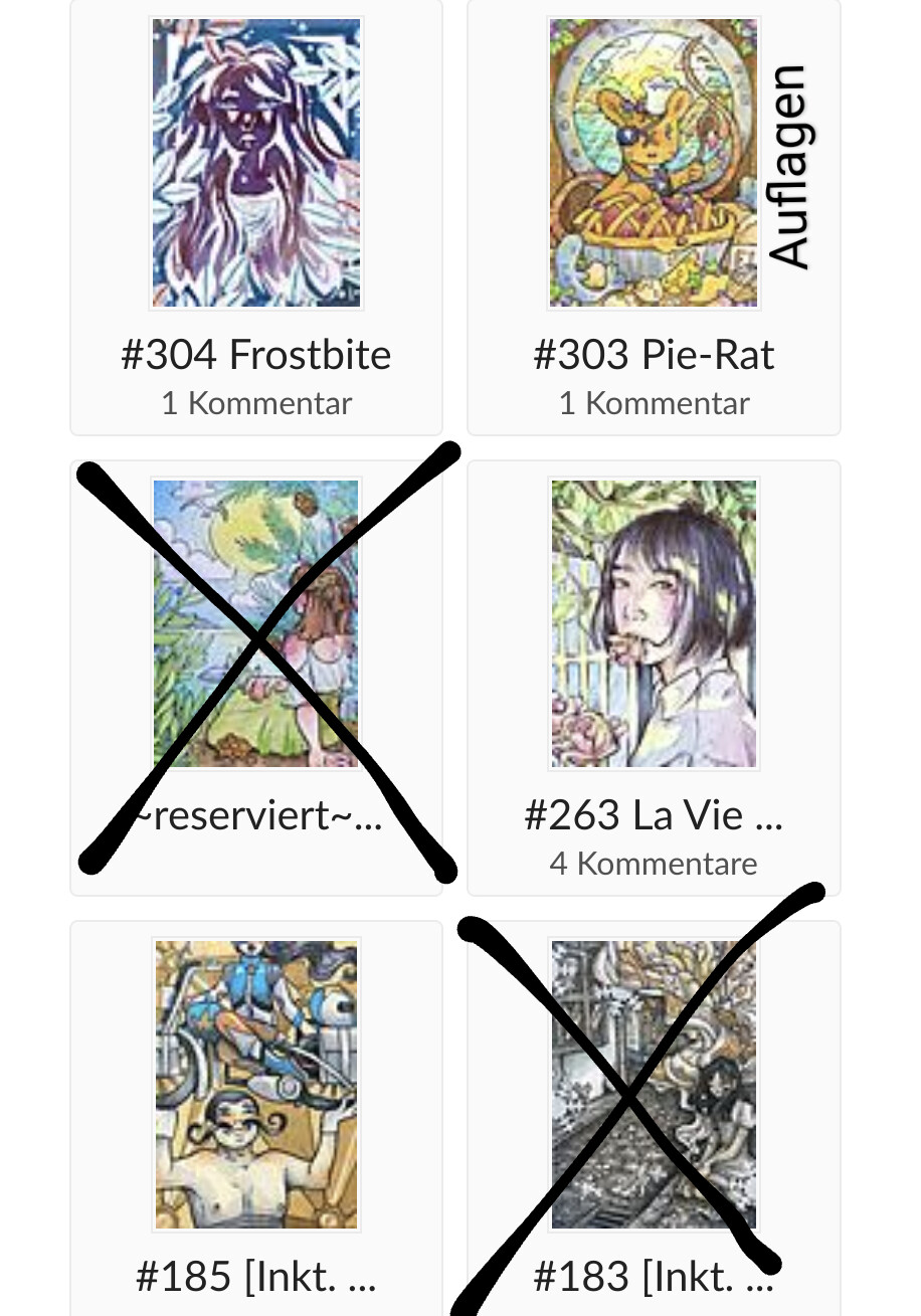 Zur Karte 144 (Unperfekt): Erst wollte ich die Karte ganz schwarz anmalen und mit weißer Farbe arbeiten. Ich fand sie so fast fertig aber irgendwie perfekt unperfekt und mochte sie dann doch nicht mehr “vollenden”. Aber da diese Karte den meisten Leuten wohl zu langweilig zum Tauschen wäre, habe ich mit Leuchtfarbe ein geheimes Motiv drauf gemalt, welches sich im dunkeln zeigt… Leider ist die Leuchtfarbe so doof getrocknet, dass man das Motiv auch ohne leuchten drauf erkennen kann, als Überraschung poste ich das Bild aber nicht ._. Keine Angst, alles ohne Content Warning oder explizites Motiv (wenn ihr es vorher wissen möchtet was drauf ist, schreibt mir gerne eine PN), ich sag nur so viel, dass es ein Fanart aus einer bekannten Kinderserie ist.