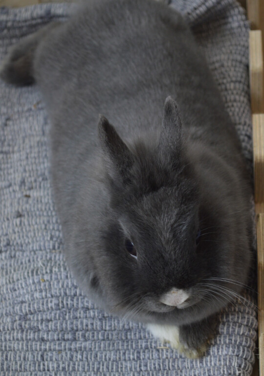 Pucky: Schwarz bis auf Nase und Pfoten (schwarze Krallen(