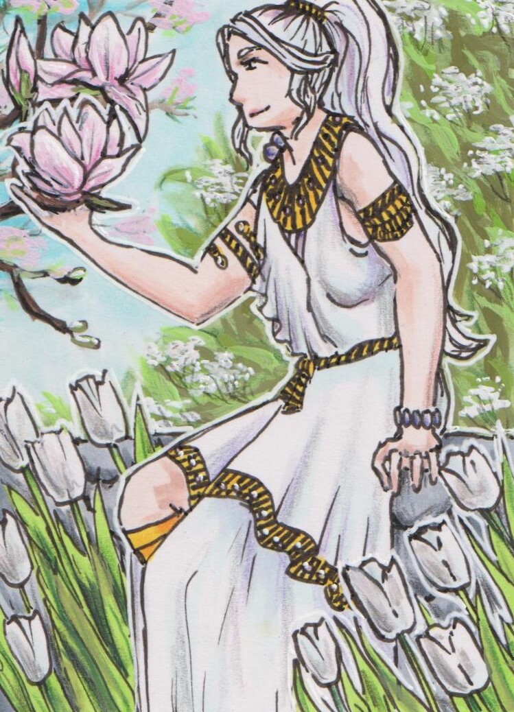 Sherin ist eine junge Naga, die schon in frühen Jahren an einen orientalischen Prinzen verkauft wurde der seltene Lebewesen sammelt. Wegen ihrer geschmeidigen Bewegungen wurde sie vom ersten Tag an in der Kunst des Tanzes unterrichtet (dafür trägt sie immer das rechte Outfit, Farben könnt ihr auch hier gerne verändern). Da sie der Liebling des Prinzen ist, ist sie etwas eingebildet und von sich selbst überzeugt. Hinter ihrer manchmal schroffen Art verbirgt sich jedoch ein liebenswürdiger Charater der immer bereit ist zu helfen. Ihre Hobbys sind neben dem Tanzen faul auf einem Kissenstapel / heißen Steinen zu liegen und die Sonne zu genießen. Ihr Lieblingsort ist der palasteigene Garten. Dort gibt es einen angelegten Koiteich in dem Kaiyō lebt mit dem sie sich erst nicht grün ist und ihn am liebsten los werden will, weil der Prinz Kaiyō ihr vorzieht.