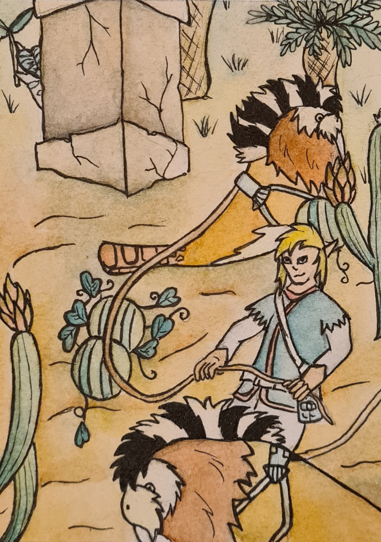Ich bin zwar weniger wichtig als das Wichtelkind, aber ich finde die Karte auch richtig schön. Da ist so viel aus dem Spiel drauf, die Frostmelonen, Kakteen, Robben, und natürlich Link. Am meisten feiere ich ja den kleinen Krog im Hintergrund <3