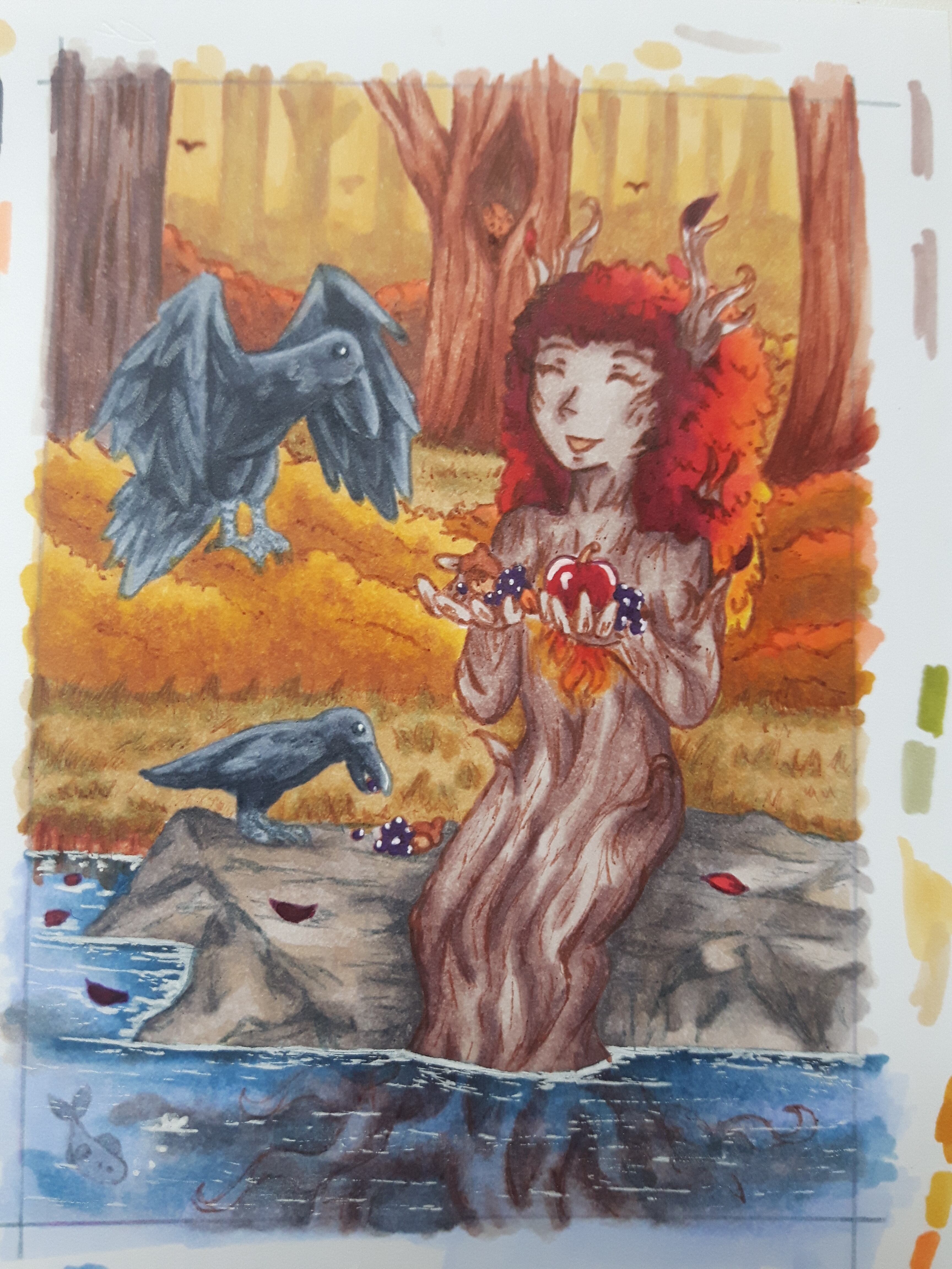 Die Herbstdryade hat mich bei deinen Wünschen direkt angelacht, ich hoffe sie gefällt dir. Leider ist meine Kamera nicht so dolle morgen gibts einen Scan.