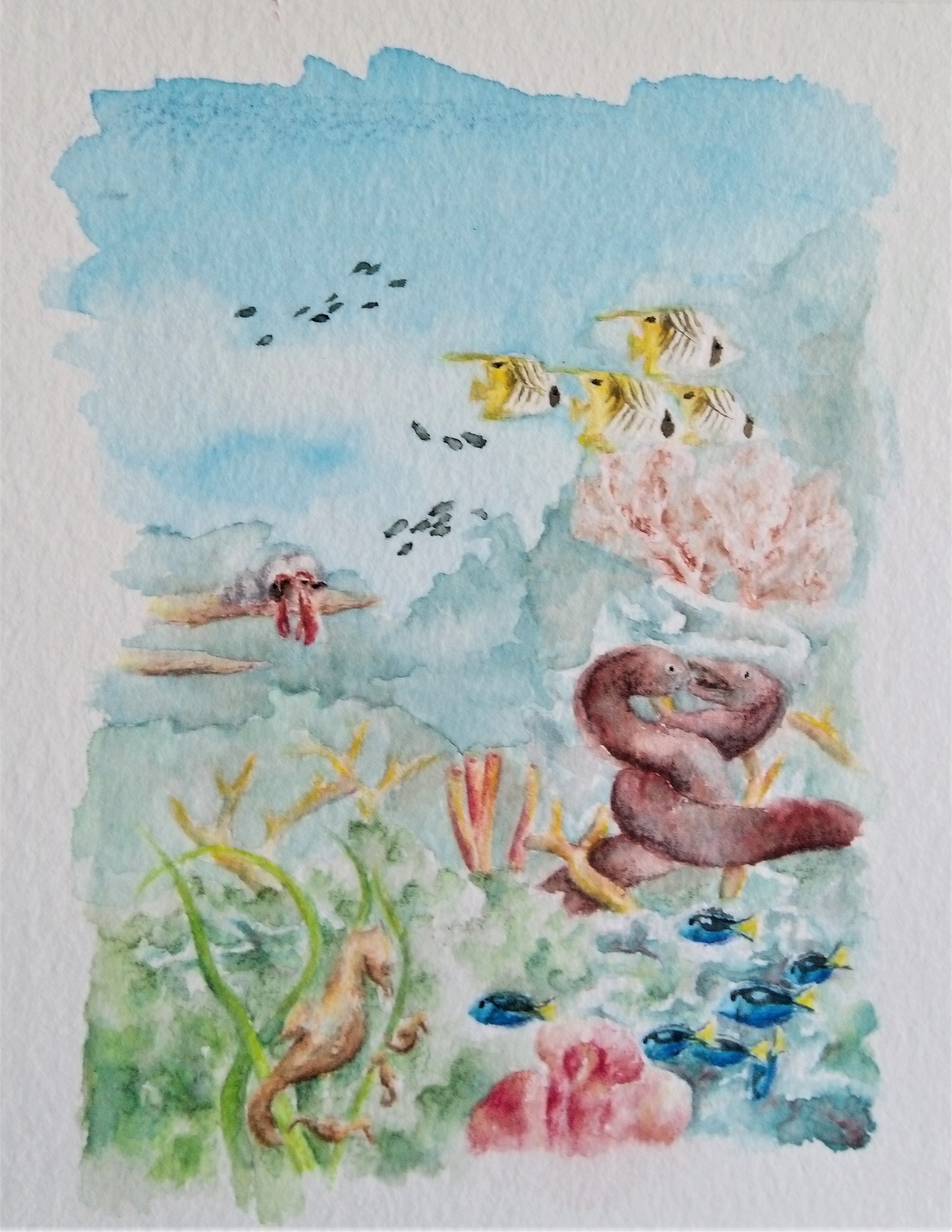 Die Karte ist jetzt deutlich bunter geworden als geplant. Aber bei einem Korallenriff war das ja auch irgendwie zu erwarten. Aktuell ist das Bild noch größer als eine Kakao-Karte, weswegen links und oben noch einiges abgeschnitten wird.