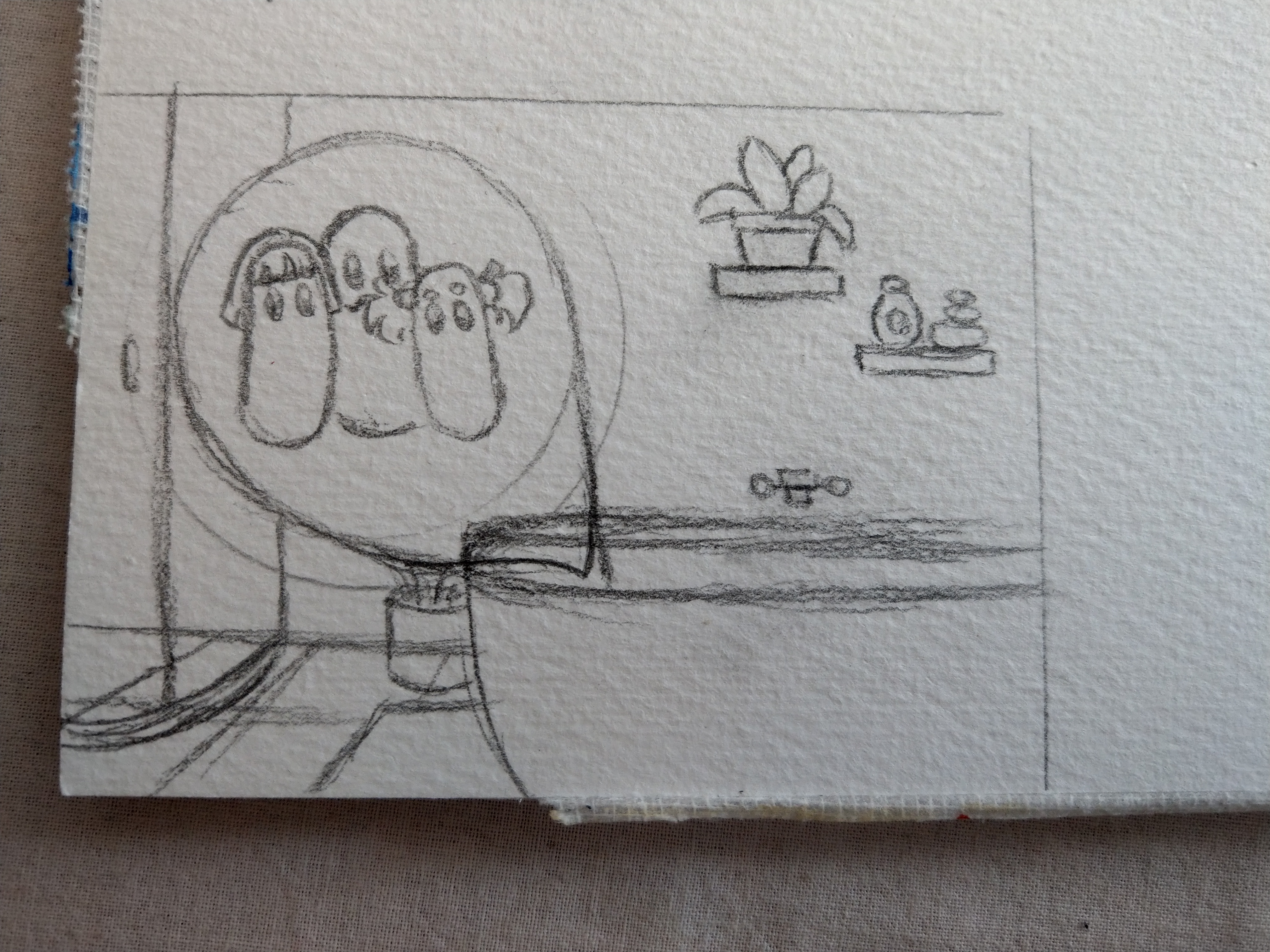 seufz irgendwie komme ich so gar nicht voran. Das ist die erste Skizze mit der ich halbwegs zufrieden bin. Wie ich die anderen beiden darstellen soll…keine Ahnung.