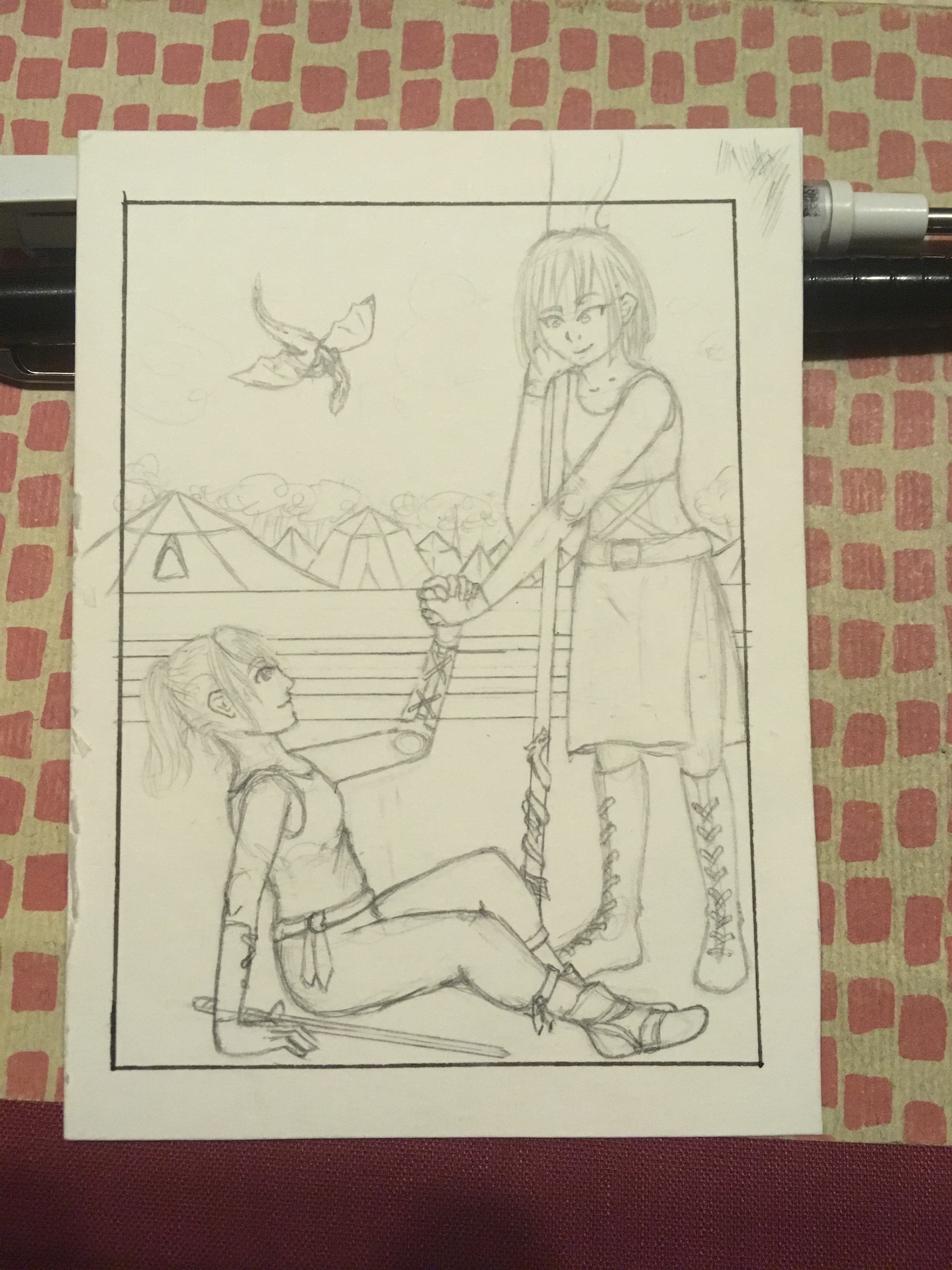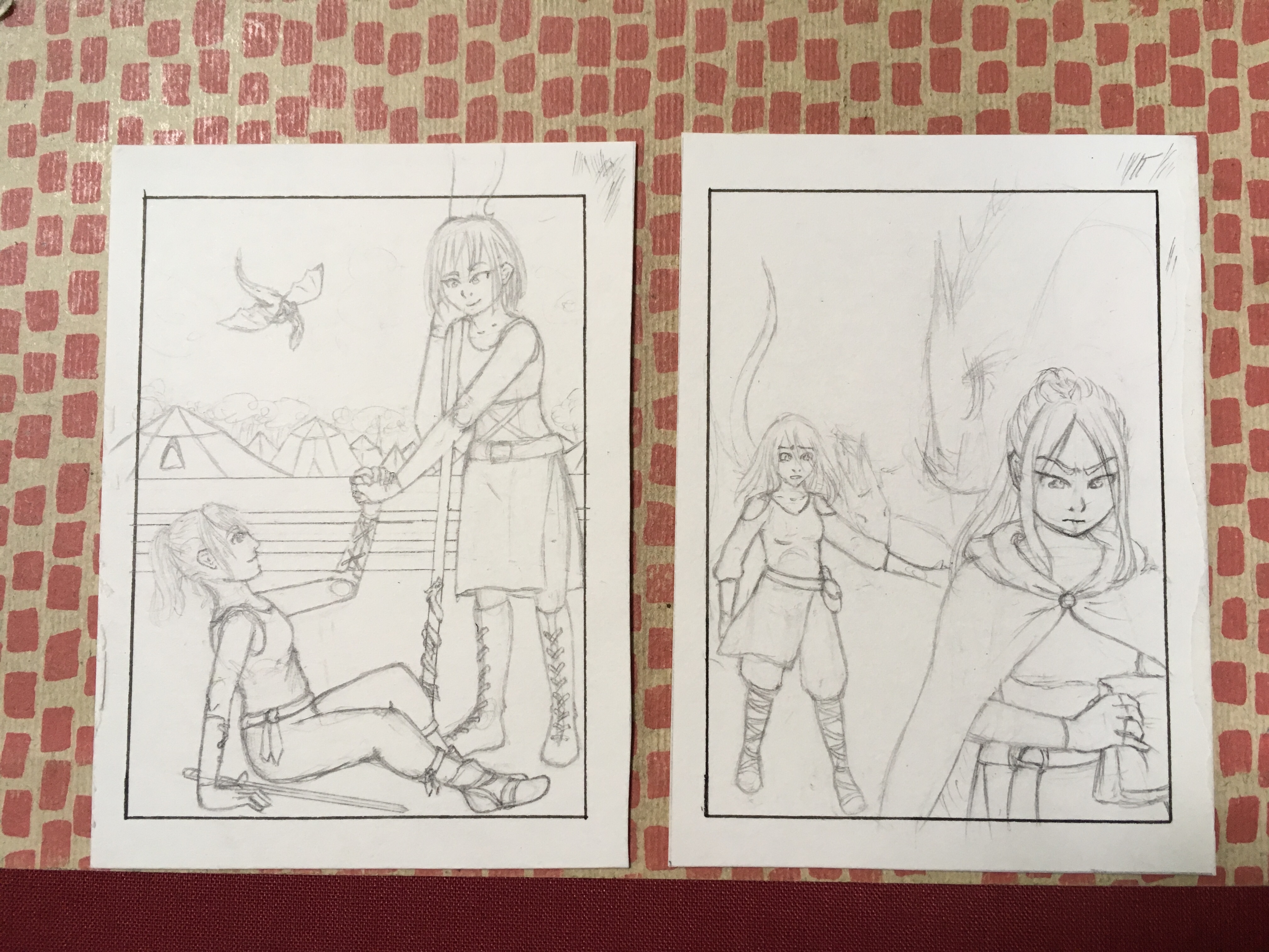 Außerdem muss ich erstmal mit Skizzen testen, ob ich sie auf “nur” drei Karten bekomme und ob die erste nicht meiner alten Karte zu ähnlich wird. ^^;