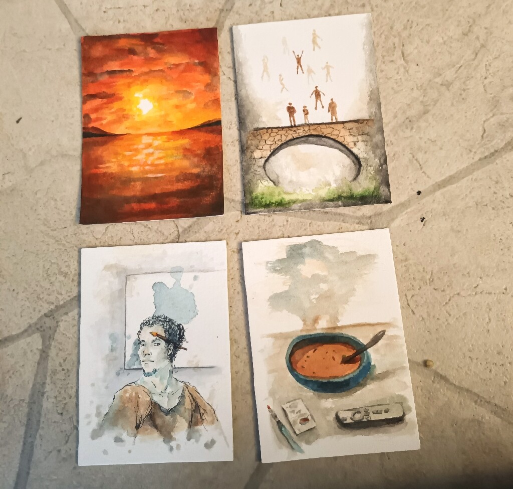 Hab mich überwunden, mich anzumelden, da mich die Aktion in den letzten Tagen immer wieder kurz zum Zeichnen brachte. Zwei von sechs Karten hab ich schon verworfen, das oben wär dann meine aktuelle Auswahl zum Thema. Dauer je 15 Minuten pro Karte. Mal schaun ob’s bei denen bleibt oder was ich noch so schaffe.